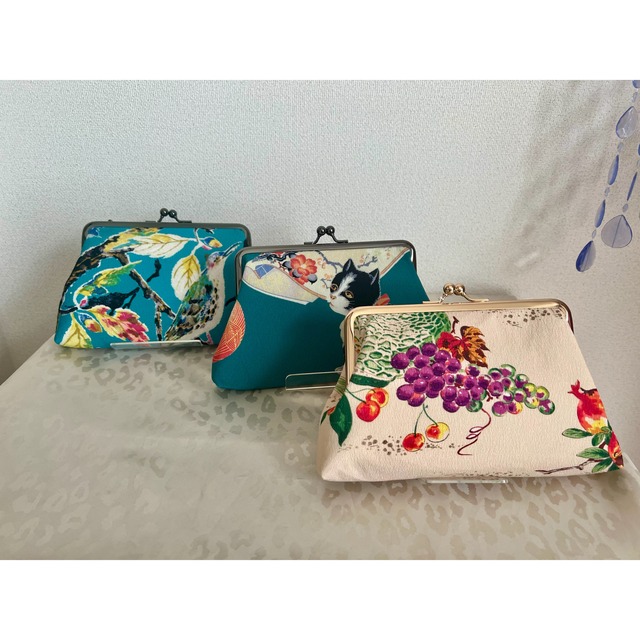 アンティーク着物の復刻生地を制作しているSiMILEとのコラボがまぐちです。 シルジェリーやセオαなどの洗える化繊生地として復刻することで、見た目の繊細さはそのままに、グンと扱いが楽になった生地にて製作致しました。 内布はポップなカラーのストライプサテン。 アンティーク着物と半衿のような合わせ方にしてみました。 唯一無二の可愛すぎるがま口バッグに仕上がりました。 ┈┈┈┈┈┈┈┈┈┈ ユーザーの皆様のご要望にお応えし、 デフォルトで装備しておりました合皮ショルダーをオプションで選択できるよう仕様変更致しました! お手持ちのショルダー等があるので不要な方は その分リーズナブルにお買い物頂けますので この機会にぜひご検討くださいませ。 ┈┈┈┈┈┈┈┈┈┈ 五月堂のがま口お財布ショルダーは 小銭パンパン、レシート溜めまくり派の方にも納得の容量と使い勝手の良さで、1番人気の商品です。 通帳やお薬手帳、スマホも一緒に持ち歩ける設計となっております。 使い勝手の良さを実感して頂けましたら幸いです。 ☆本体サイズ☆ W220mm.H150mm(口金部分含む).D35mm ☆合革ショルダー☆ 800mm~1470mm ☆口金サイズ☆ 180mm がまぐちは構造上、ファスナーとは異なり 中に物を入れすぎると付加がかかり 口金が開いてしまったり、 袋部分からはずれてしまうこともございます。 加減してお使い頂けますことをお願い申し上げます。