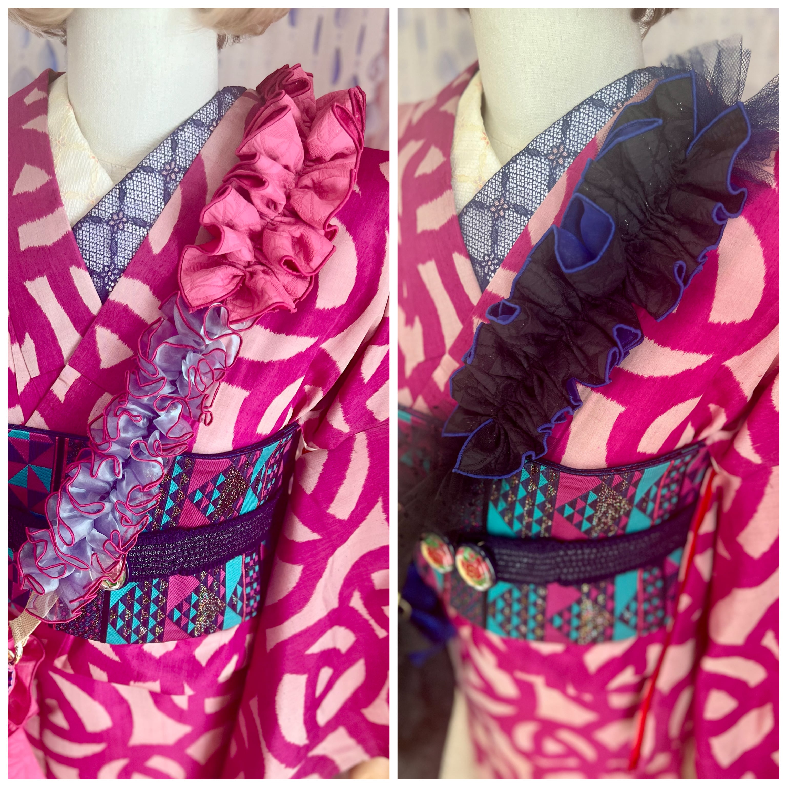 五月堂2025新作きものRIBBON RUSHシリーズのフリルショルダーです。