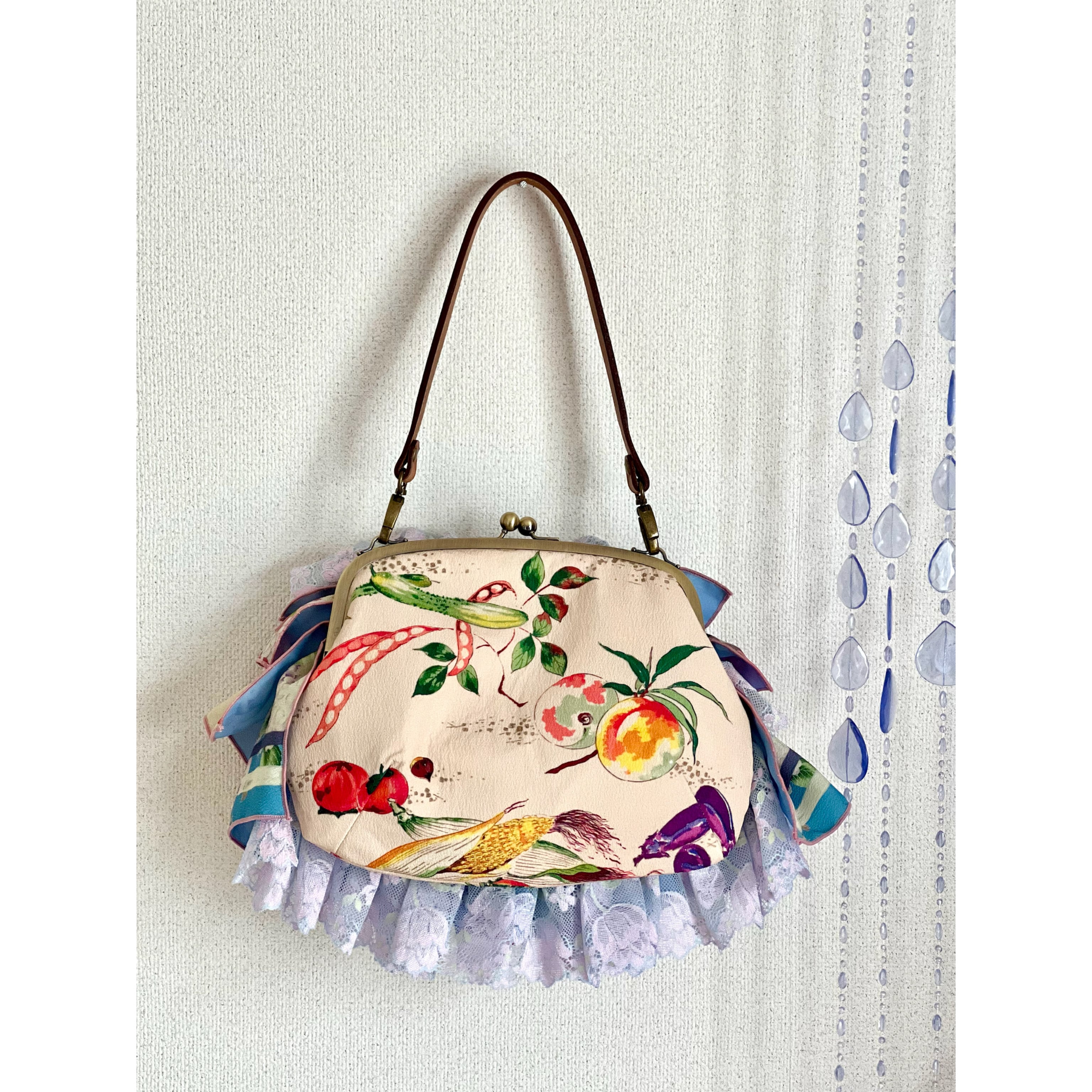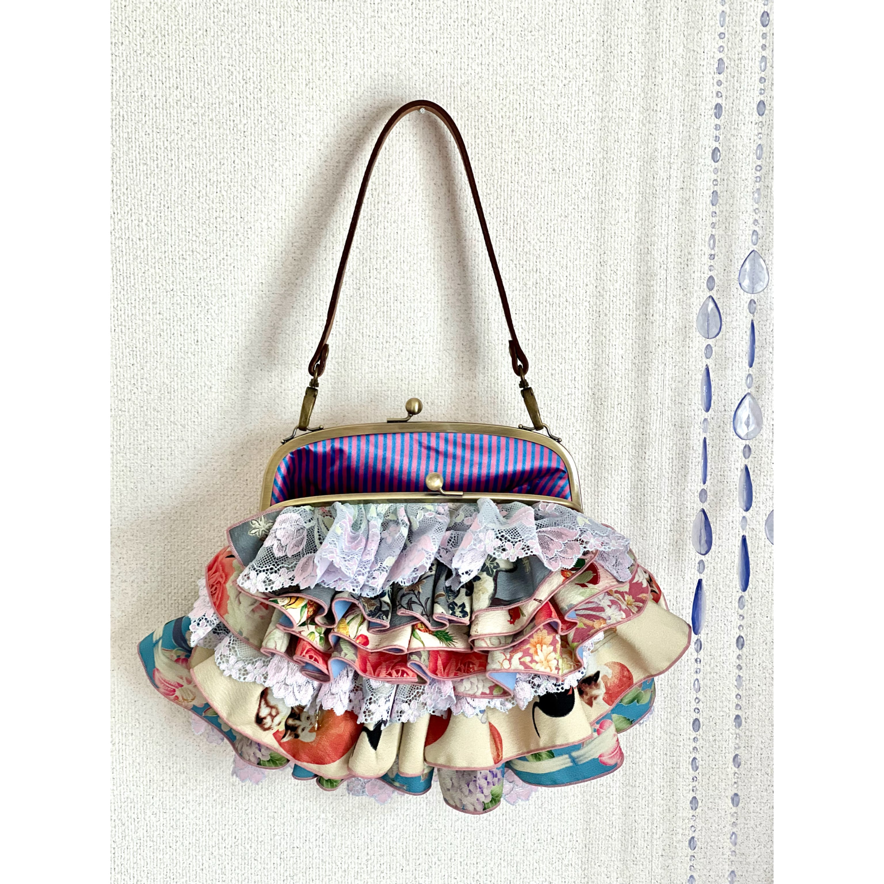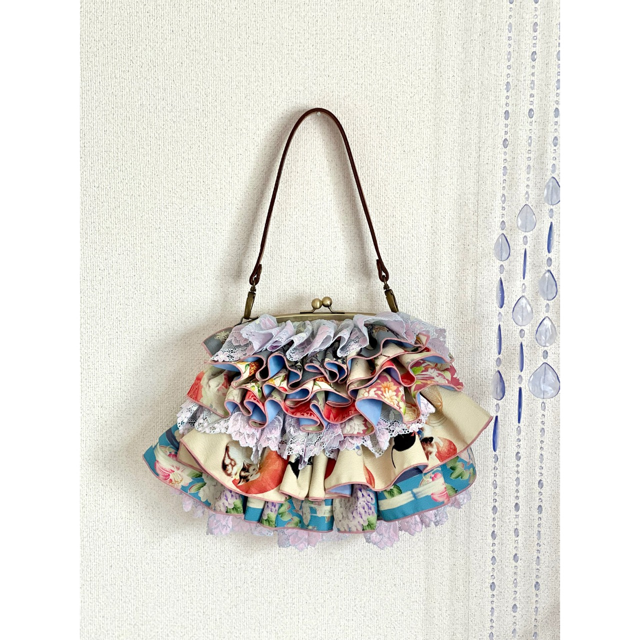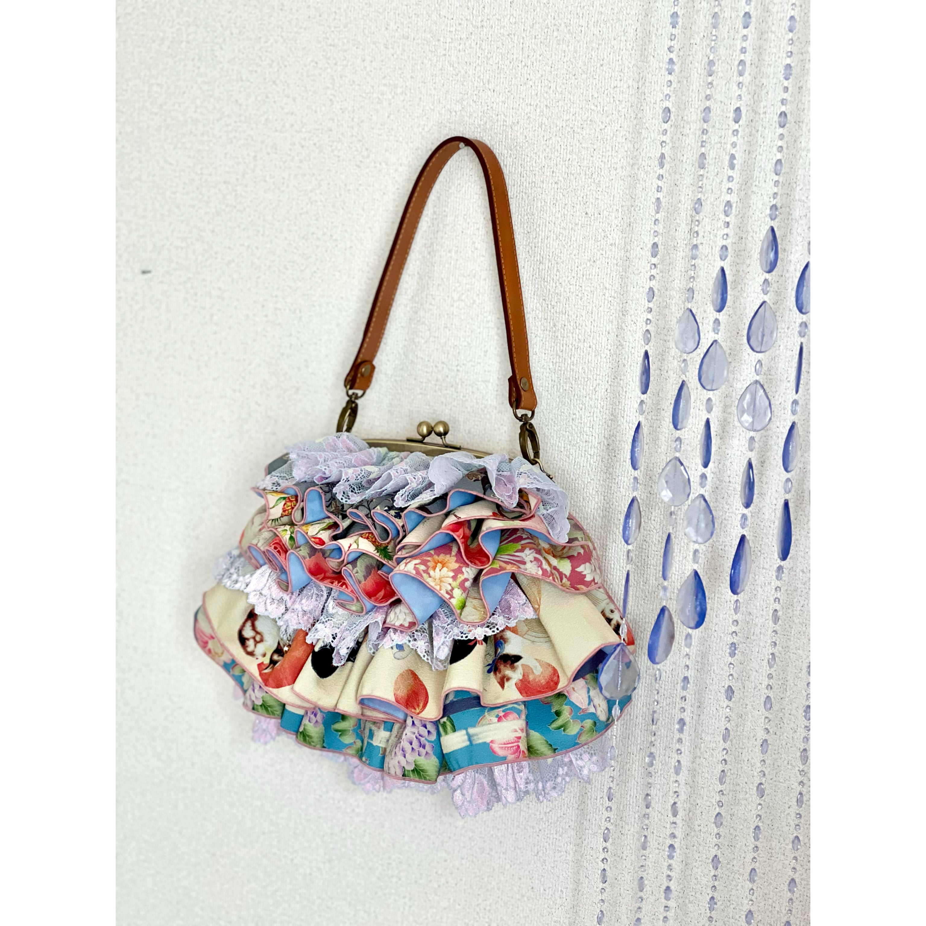 アンティーク着物の復刻生地を制作しているSiMILEとのコラボフリルバッグです。