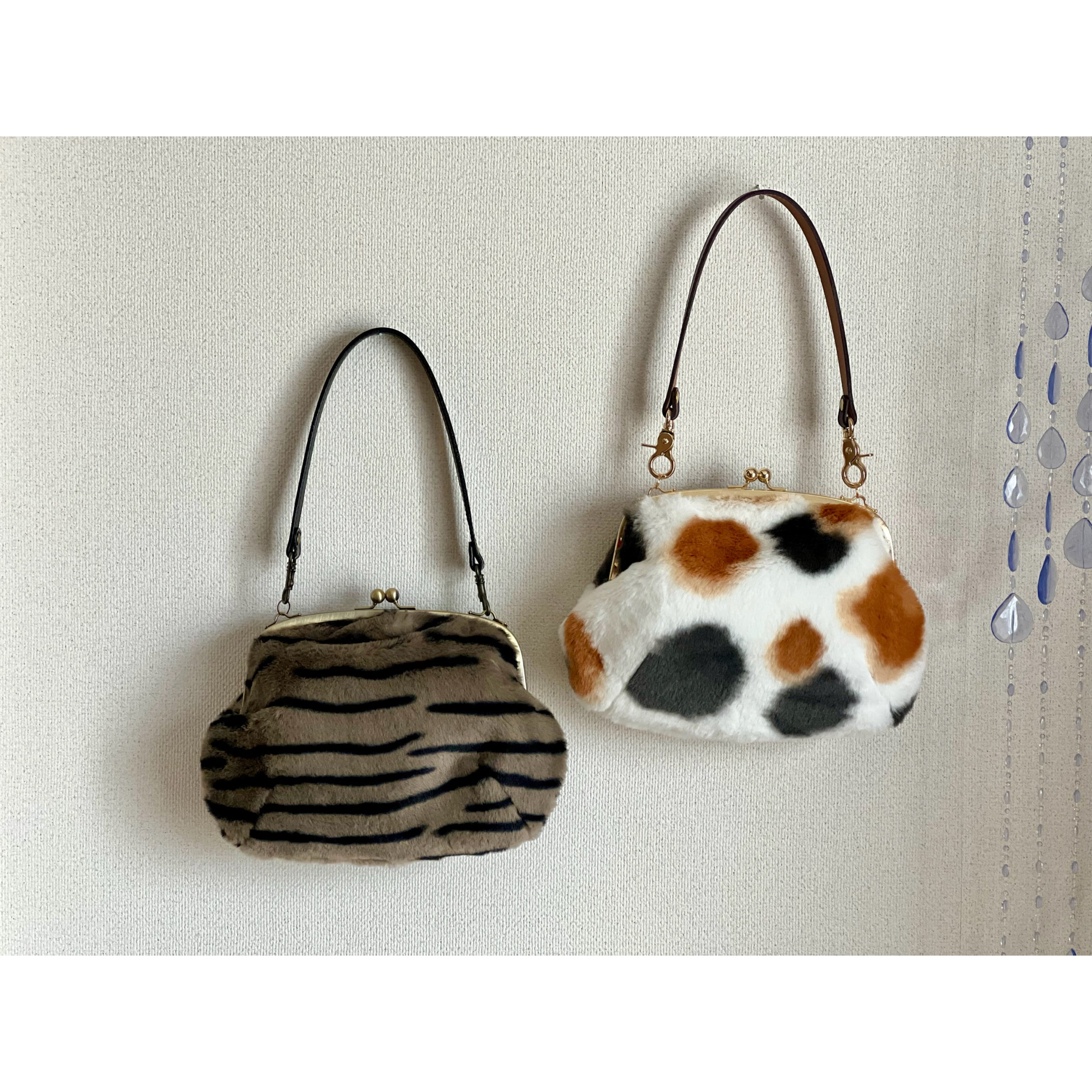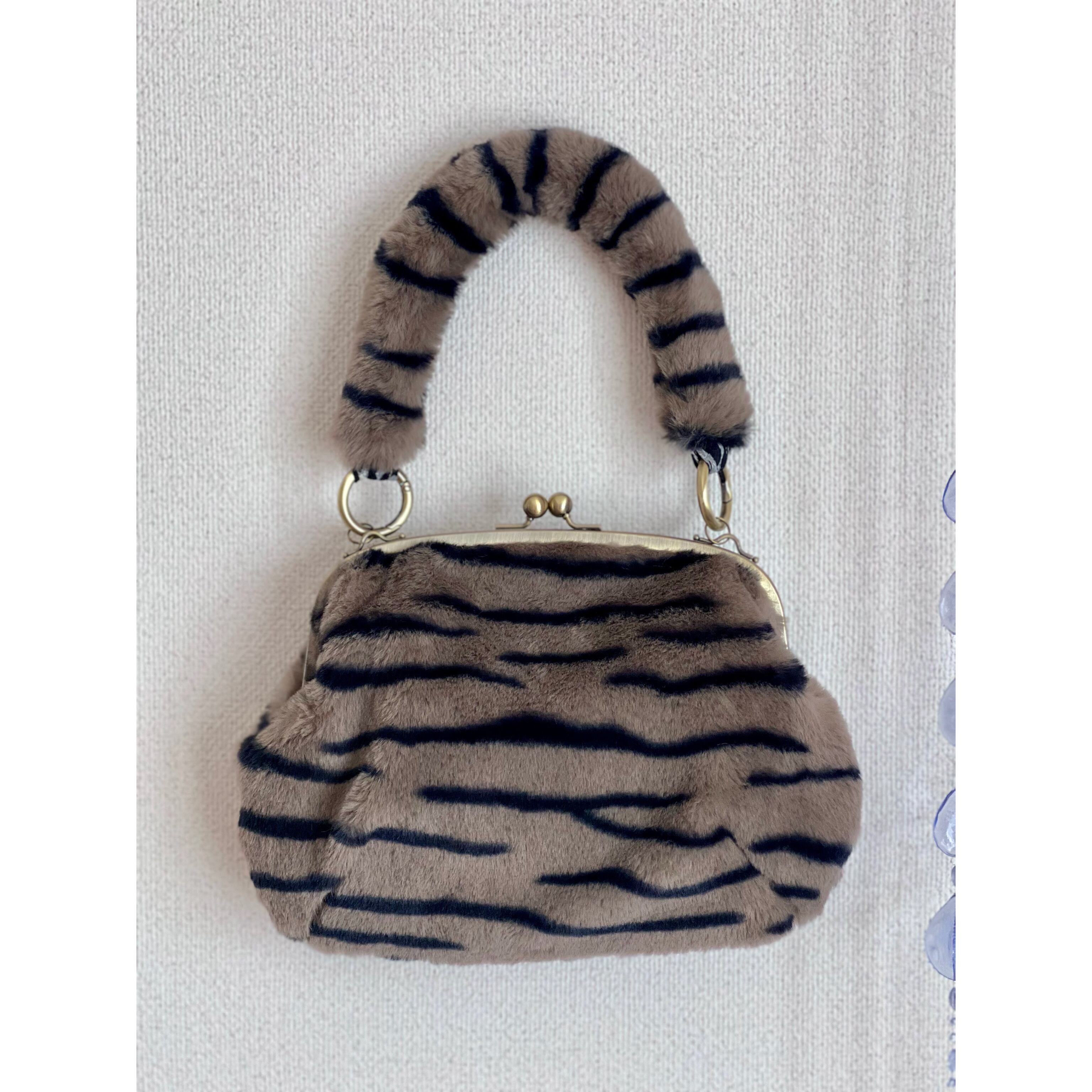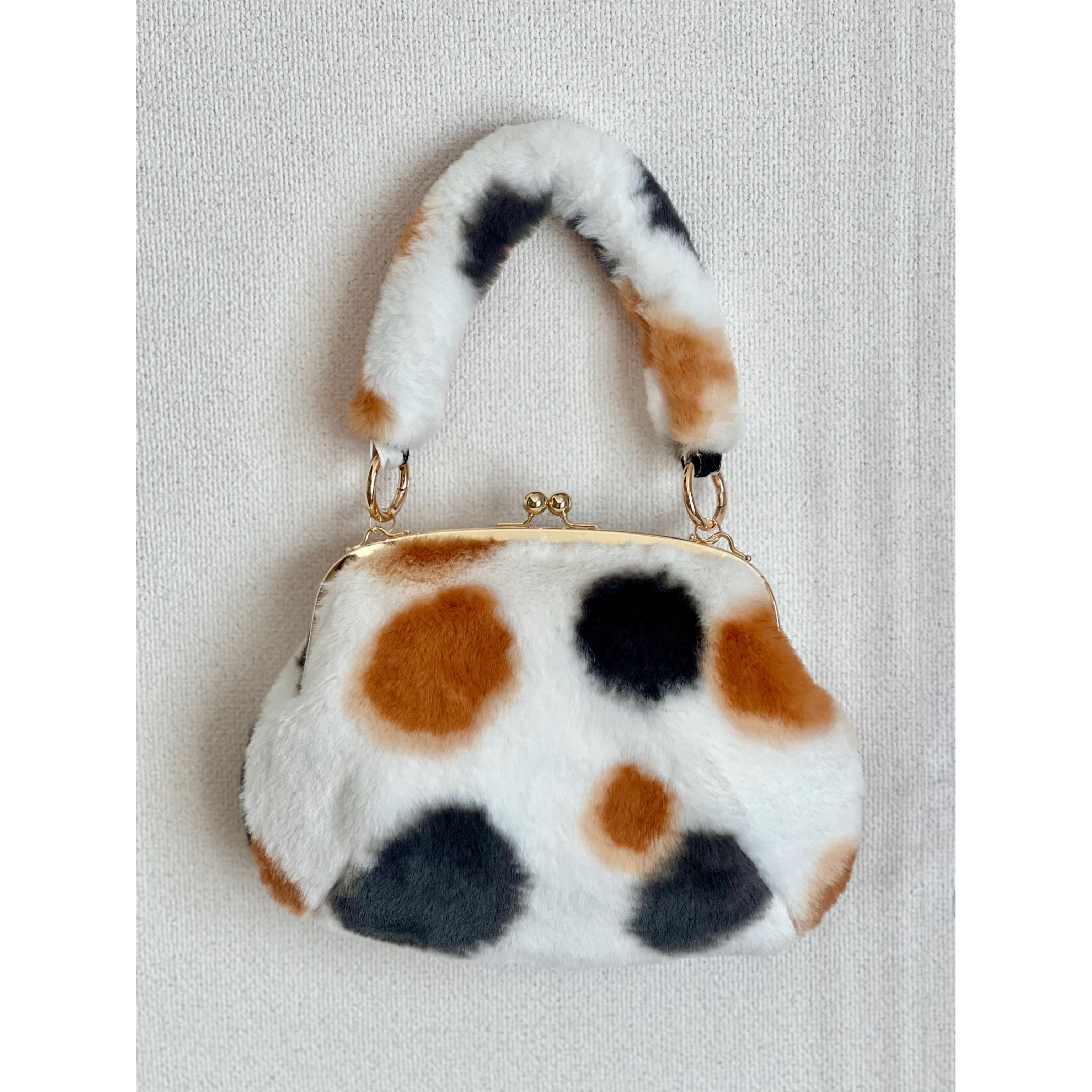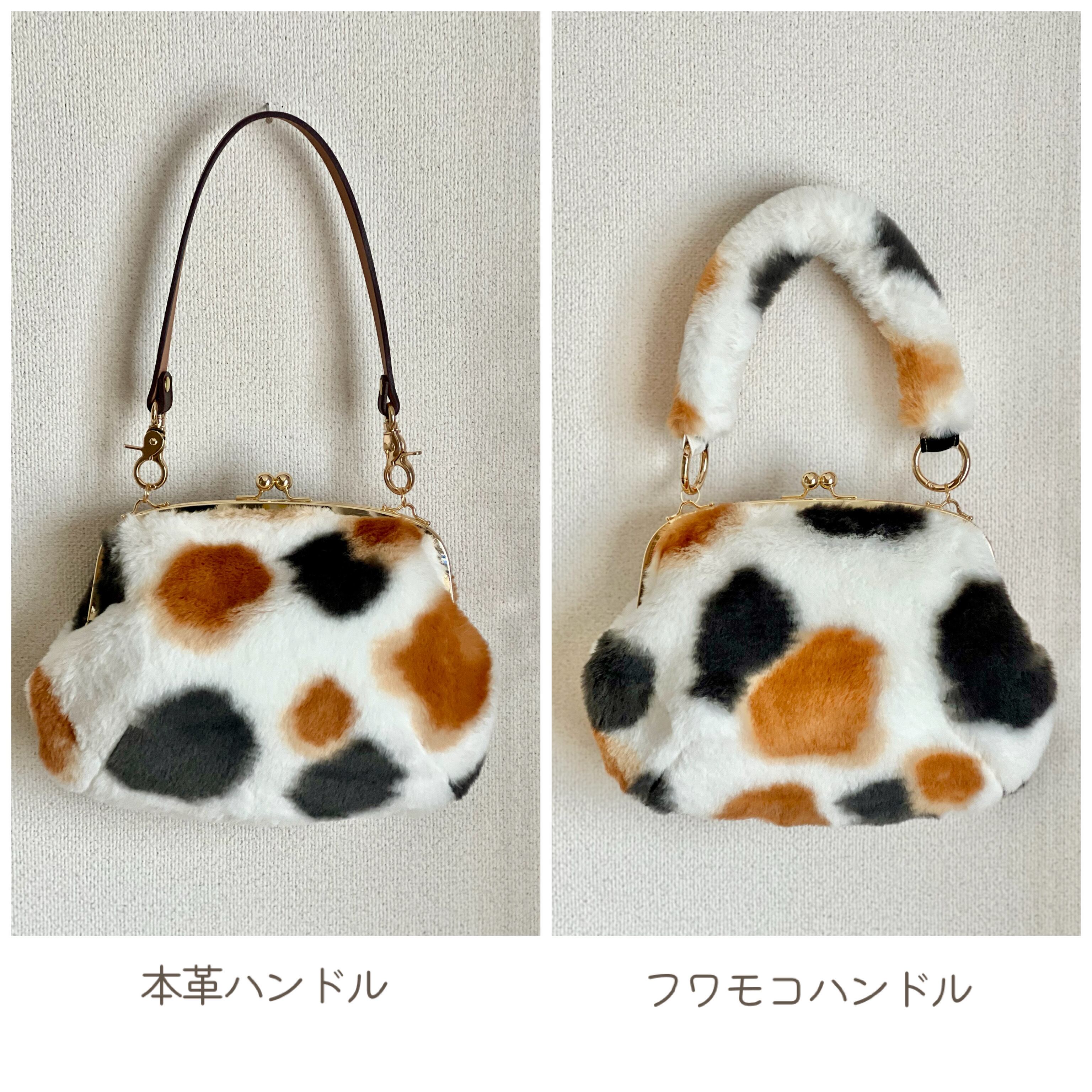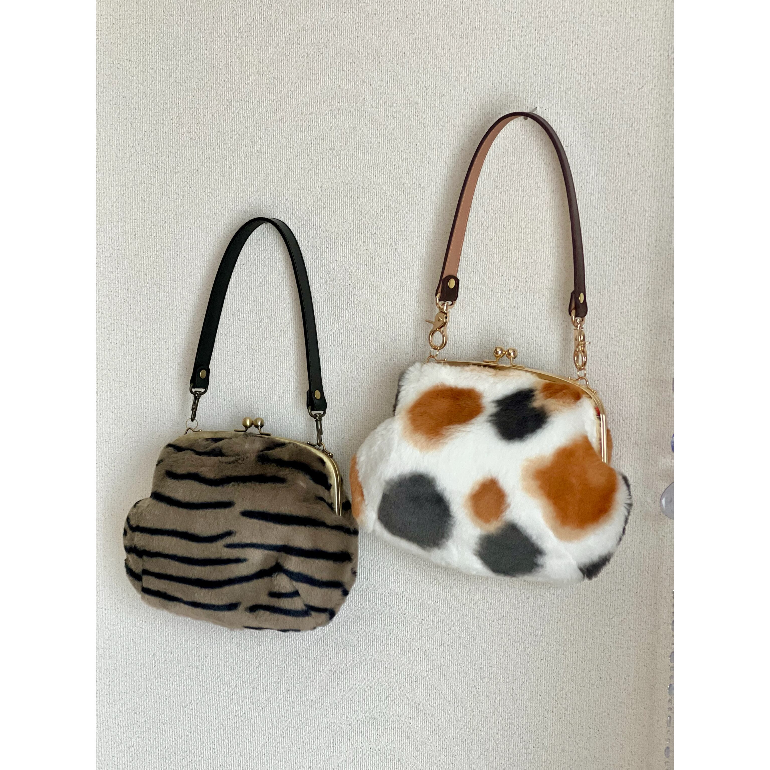 ふわふわした手触りの猫柄フェイクファーのがま口バッグが新登場!!