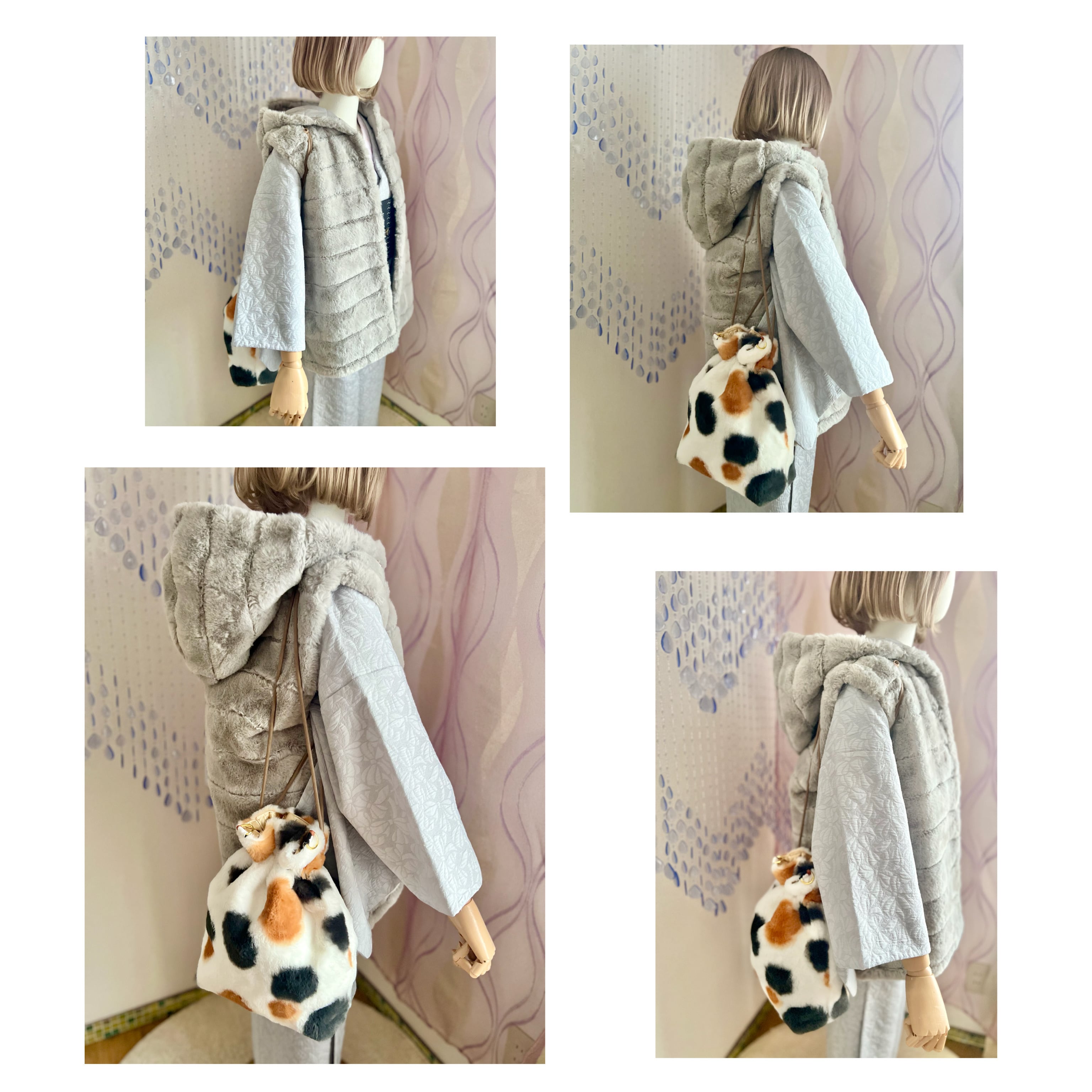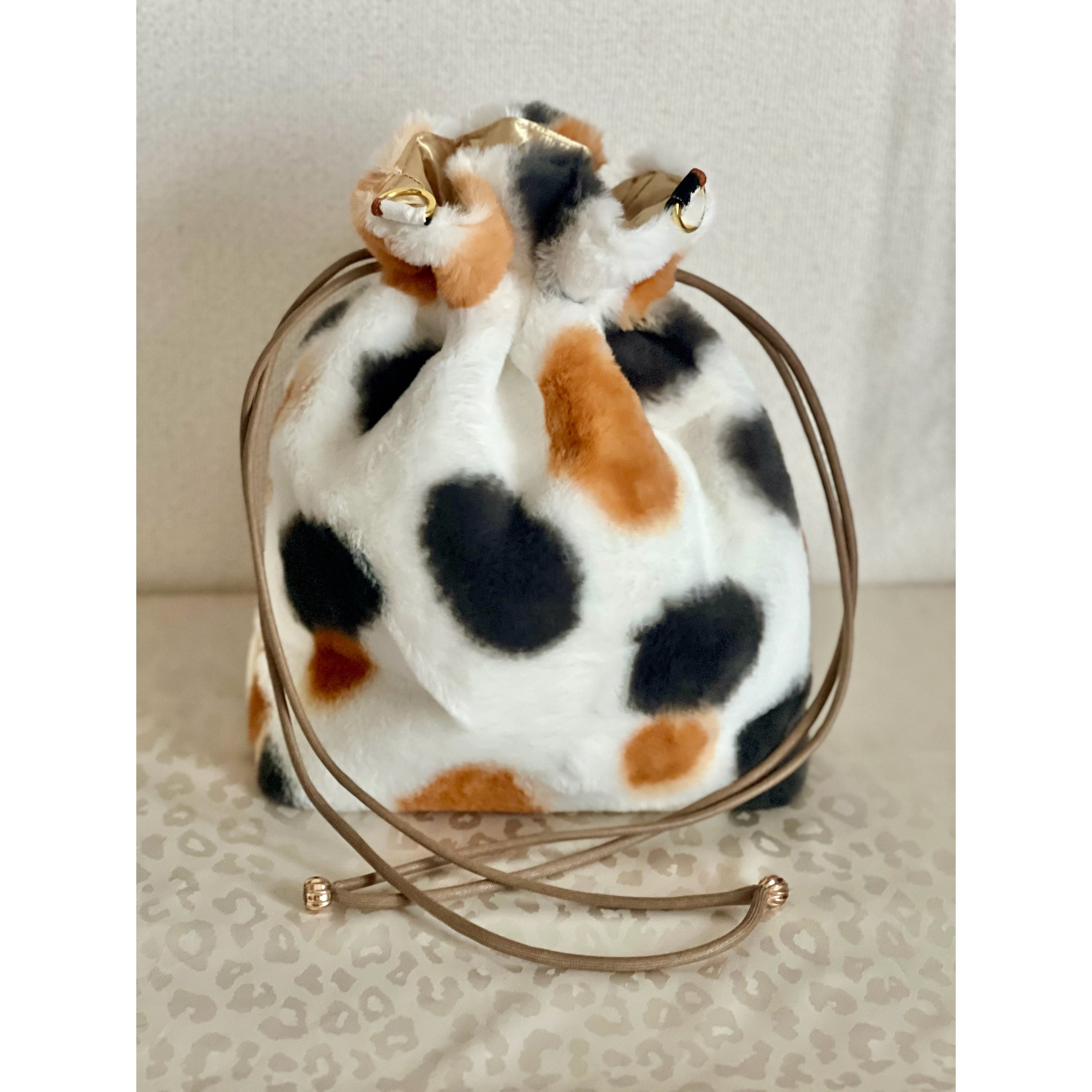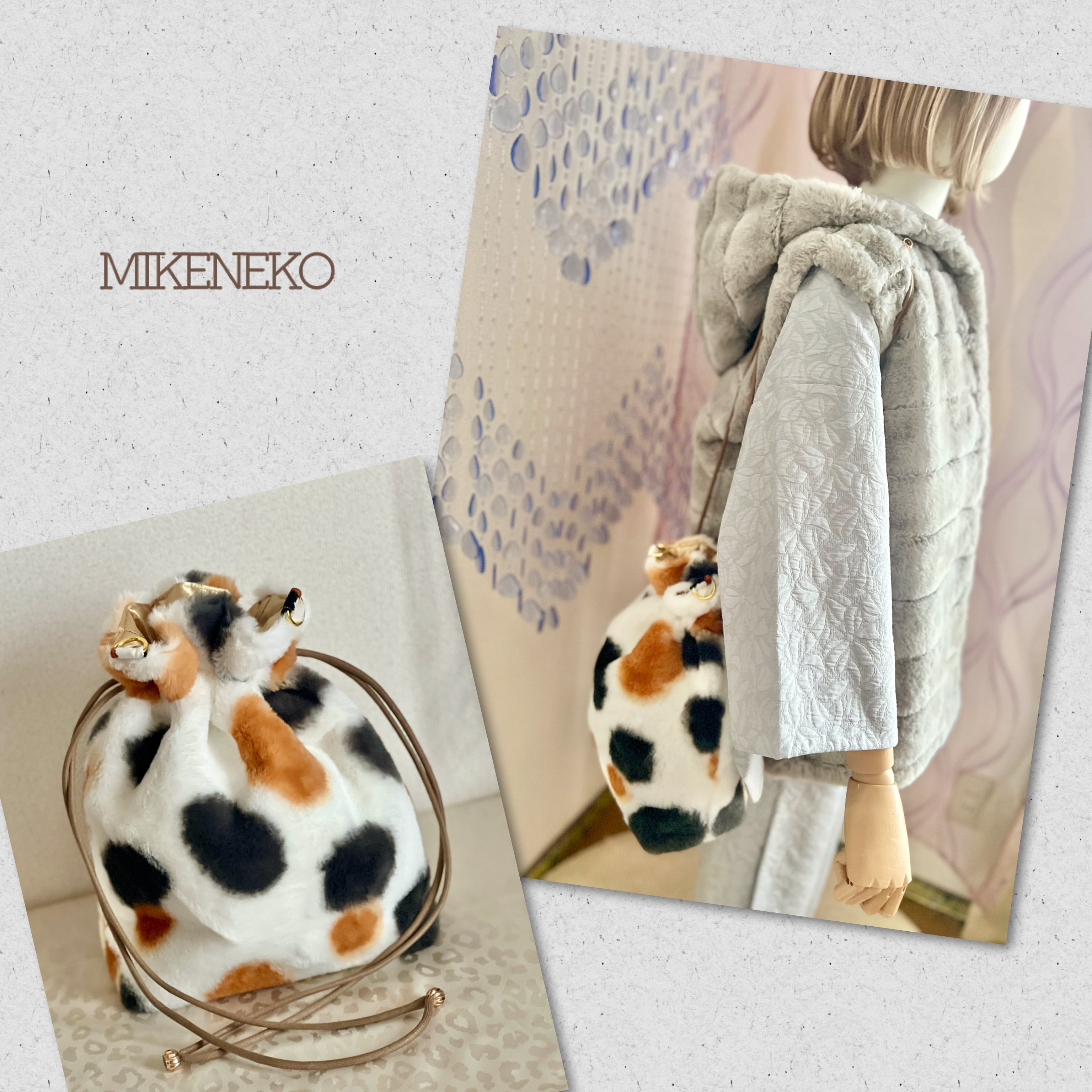 フワモコフェイクファーシリーズの三毛猫&鯖虎を巾着バッグに仕立てました!!