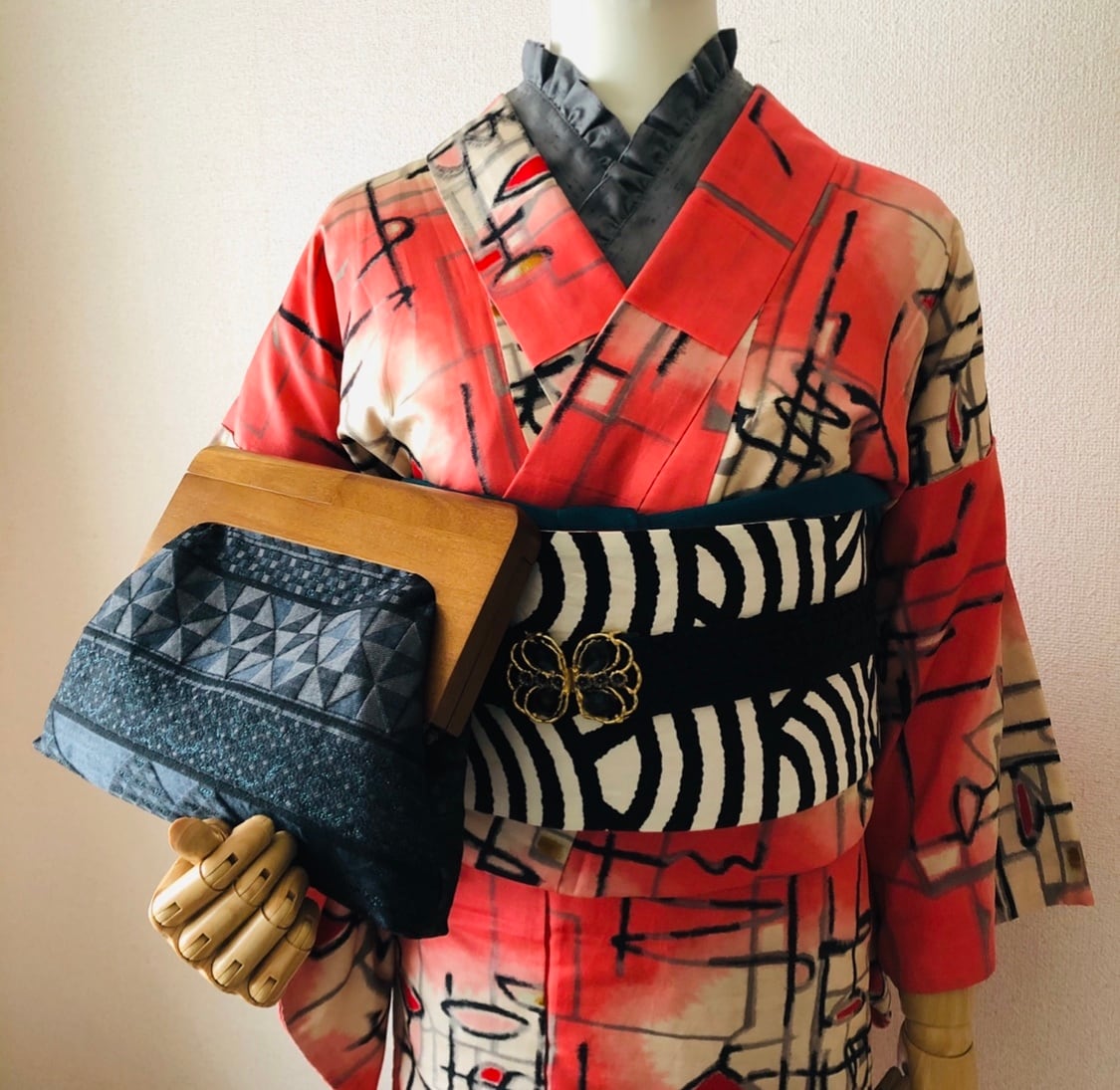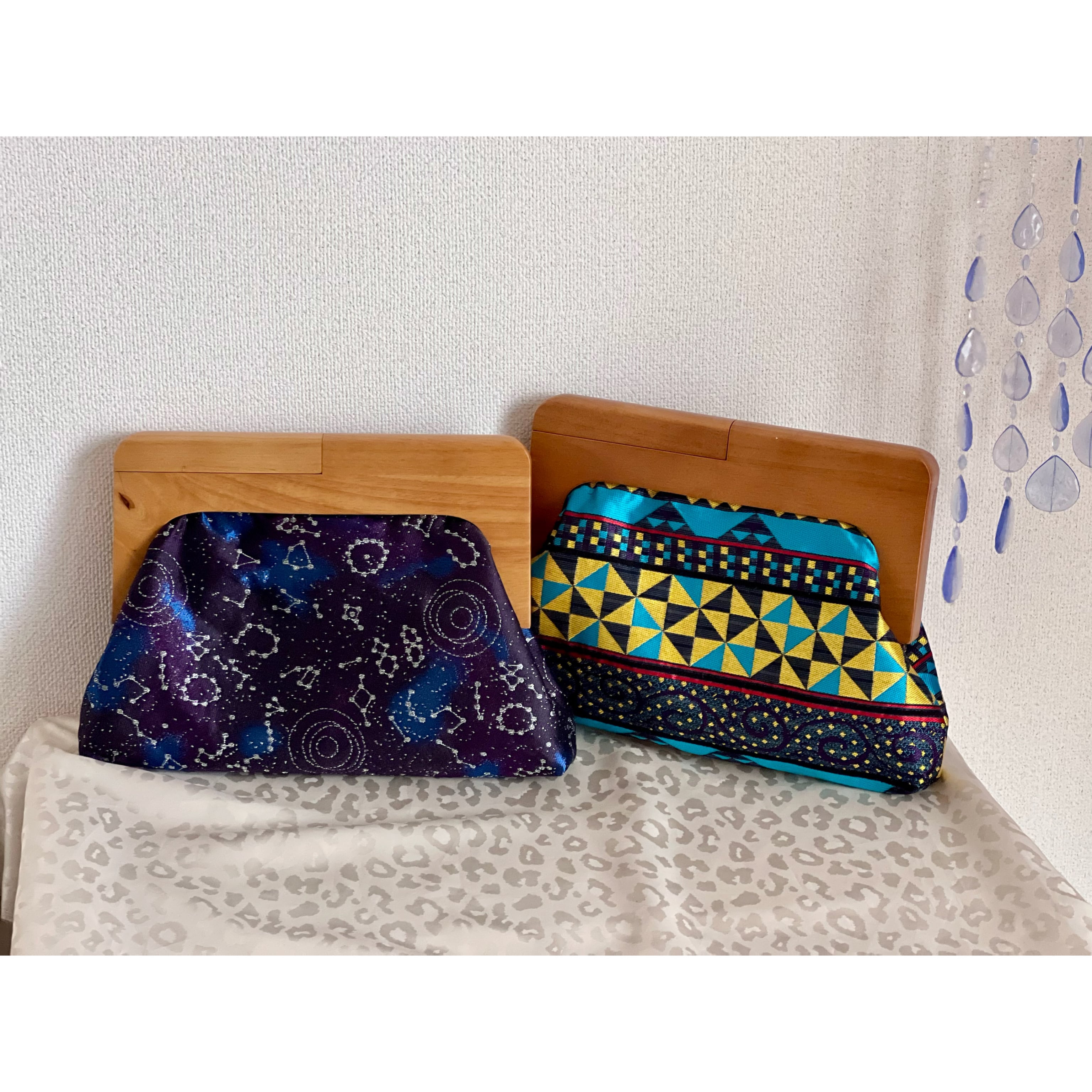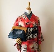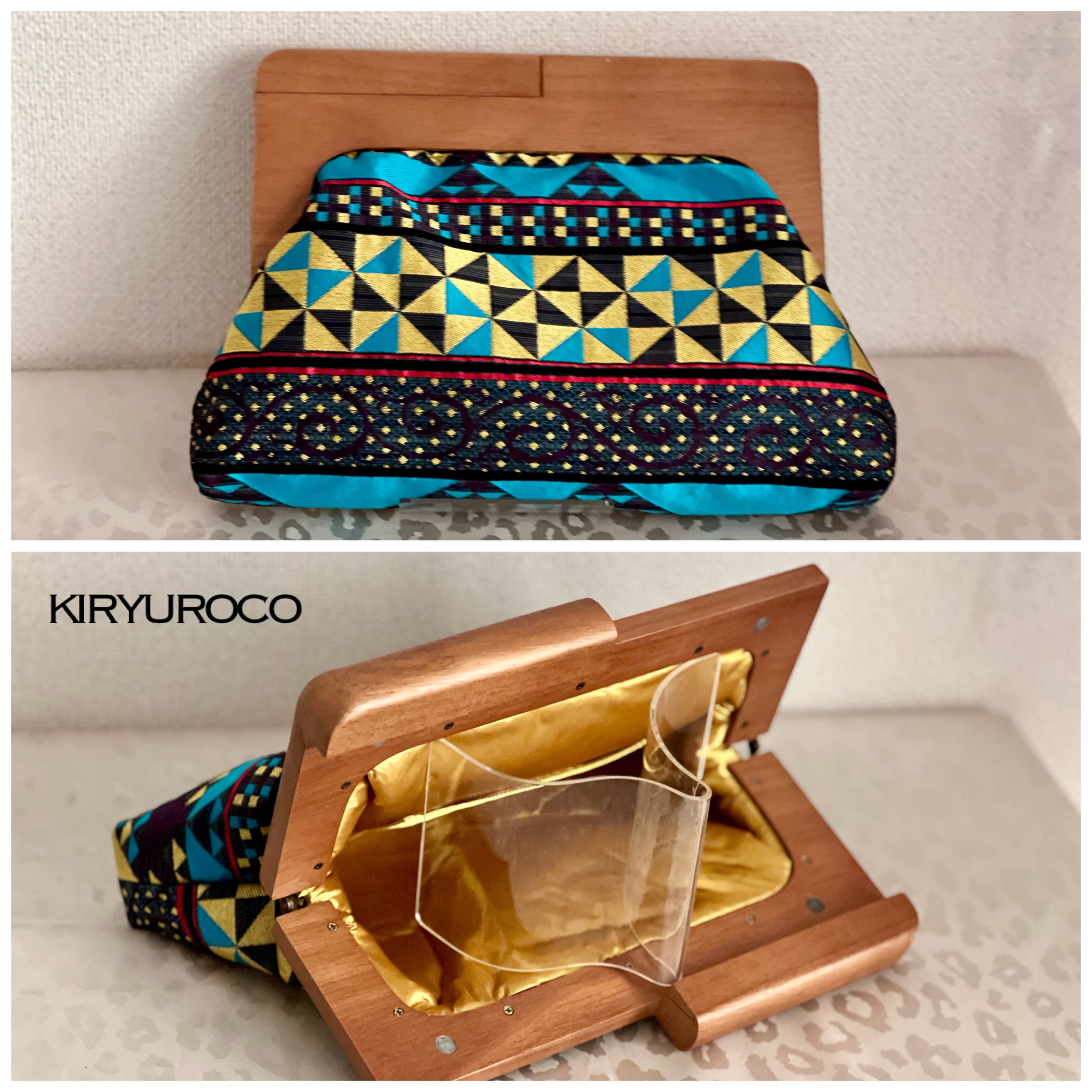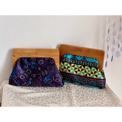 桐生織の帯地を使用した、ちょっと珍しい木製口金のクラッチバッグです。
