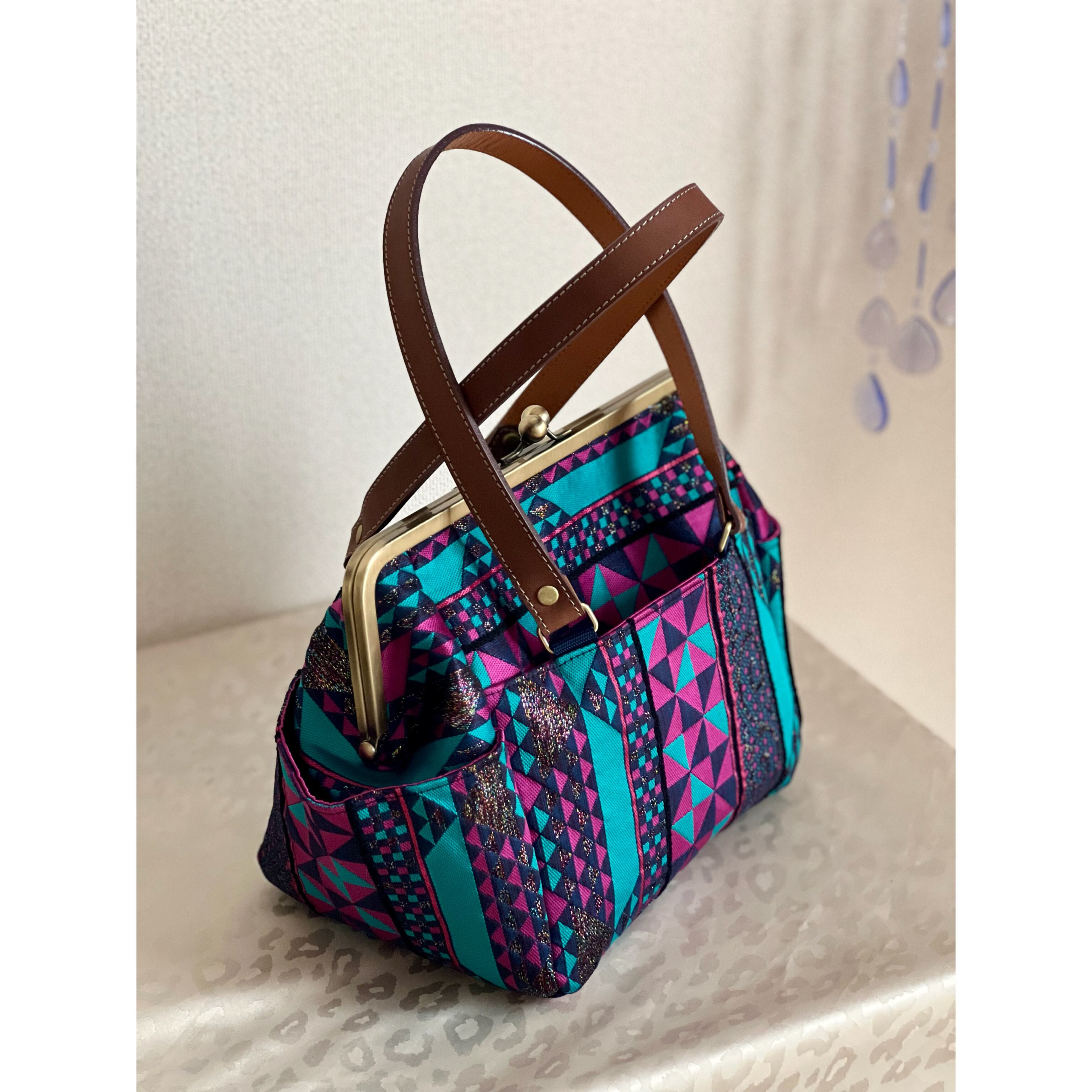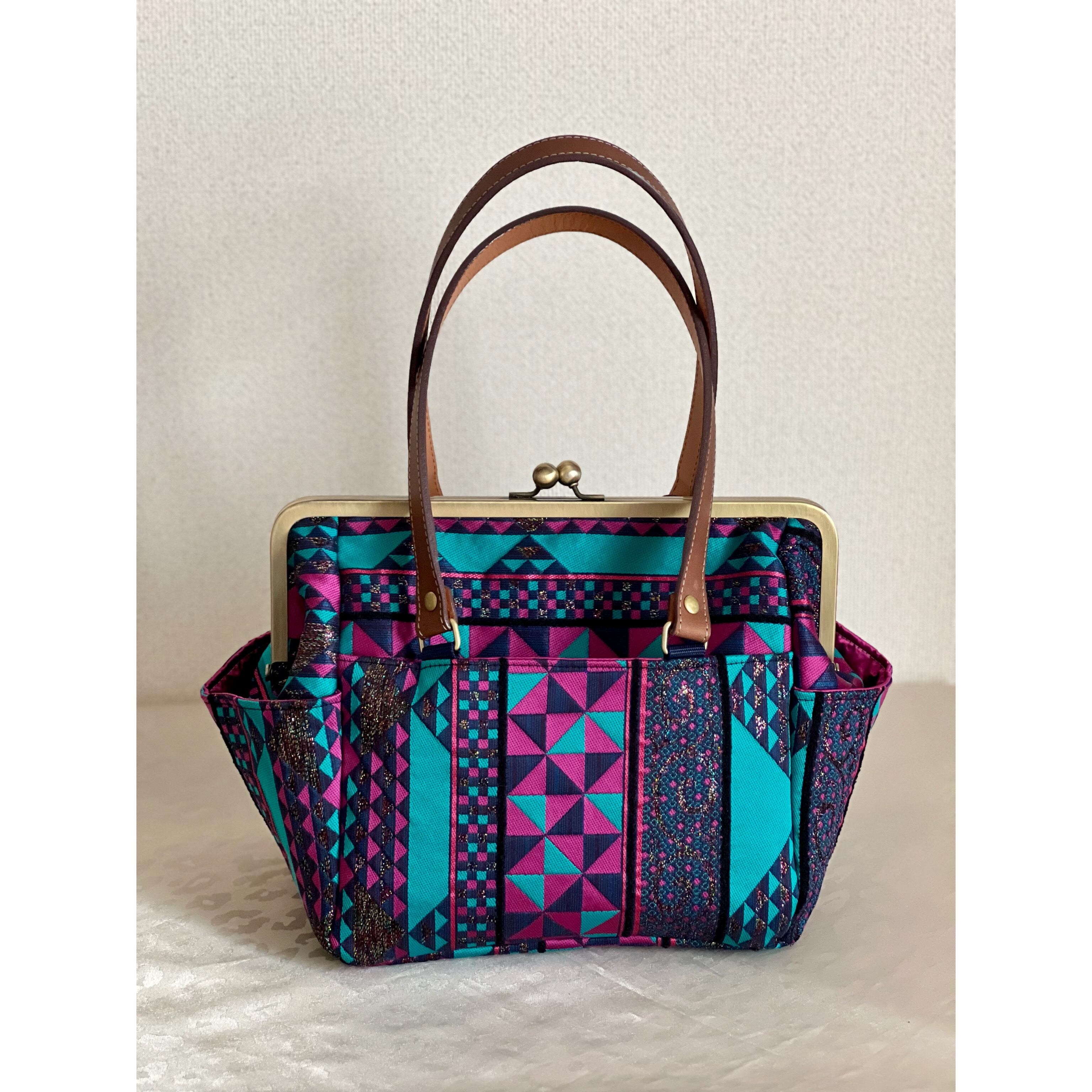 桐生織の帯地を使用した、ちょっとそこまでのお出かけにちょうどいいサイズのボストンバッグです。