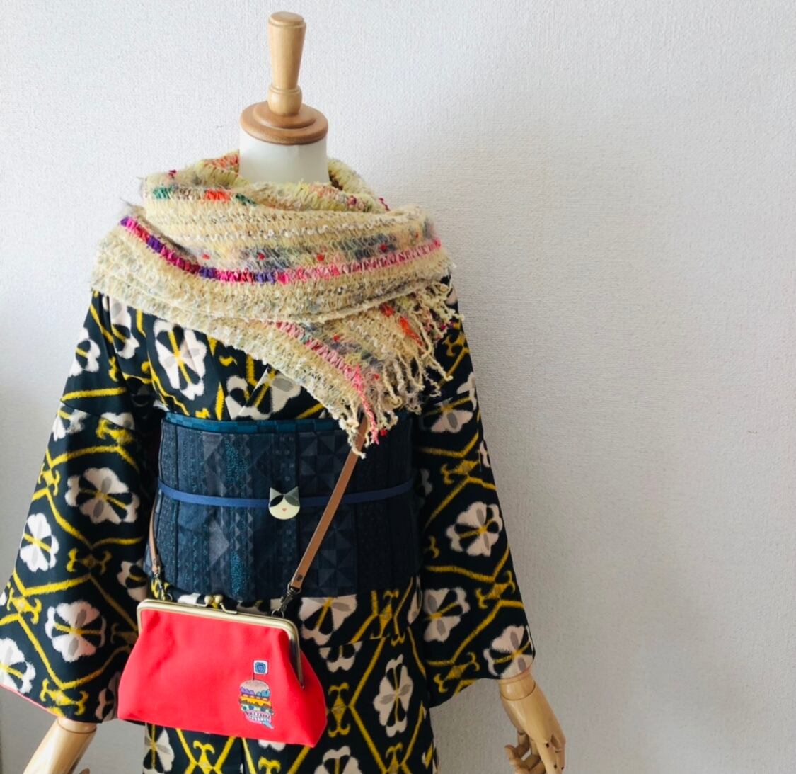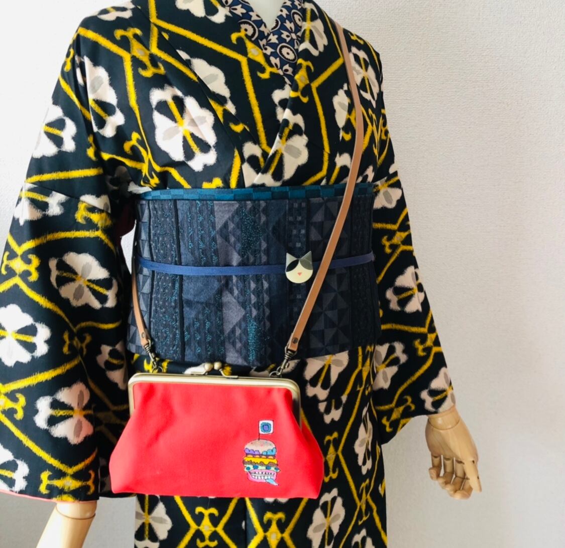 群馬のキモノ柄足しアーティスト茶模華の前身ブランドchakamochaペイントによる一点物のお財布ショルダーです。