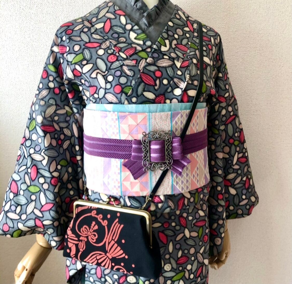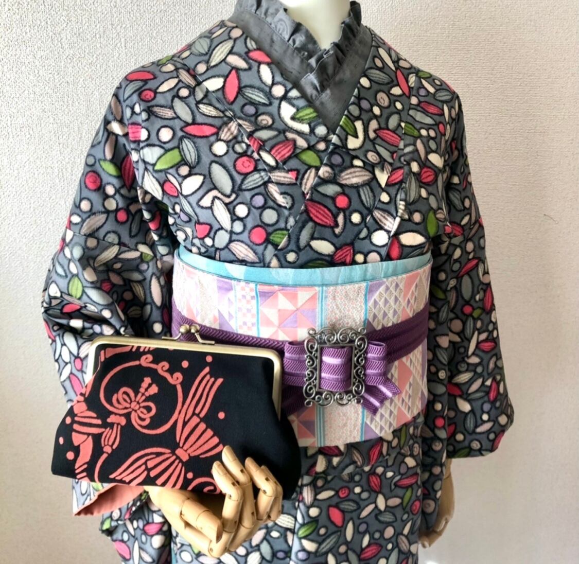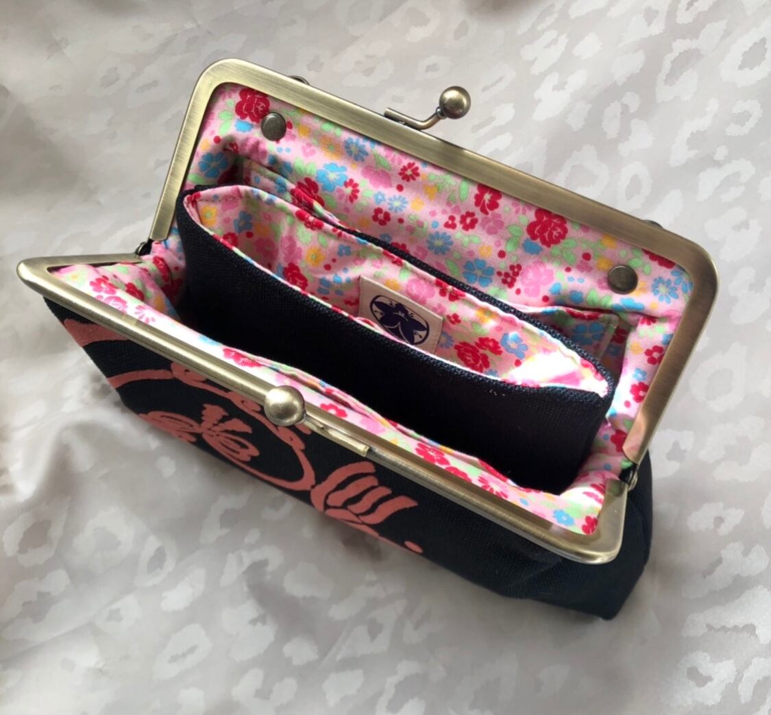 オリジナルテキスタイルブランド、彩りirodoriとコラボしたがまぐち、彩月シリーズのお財布ショルダーです。