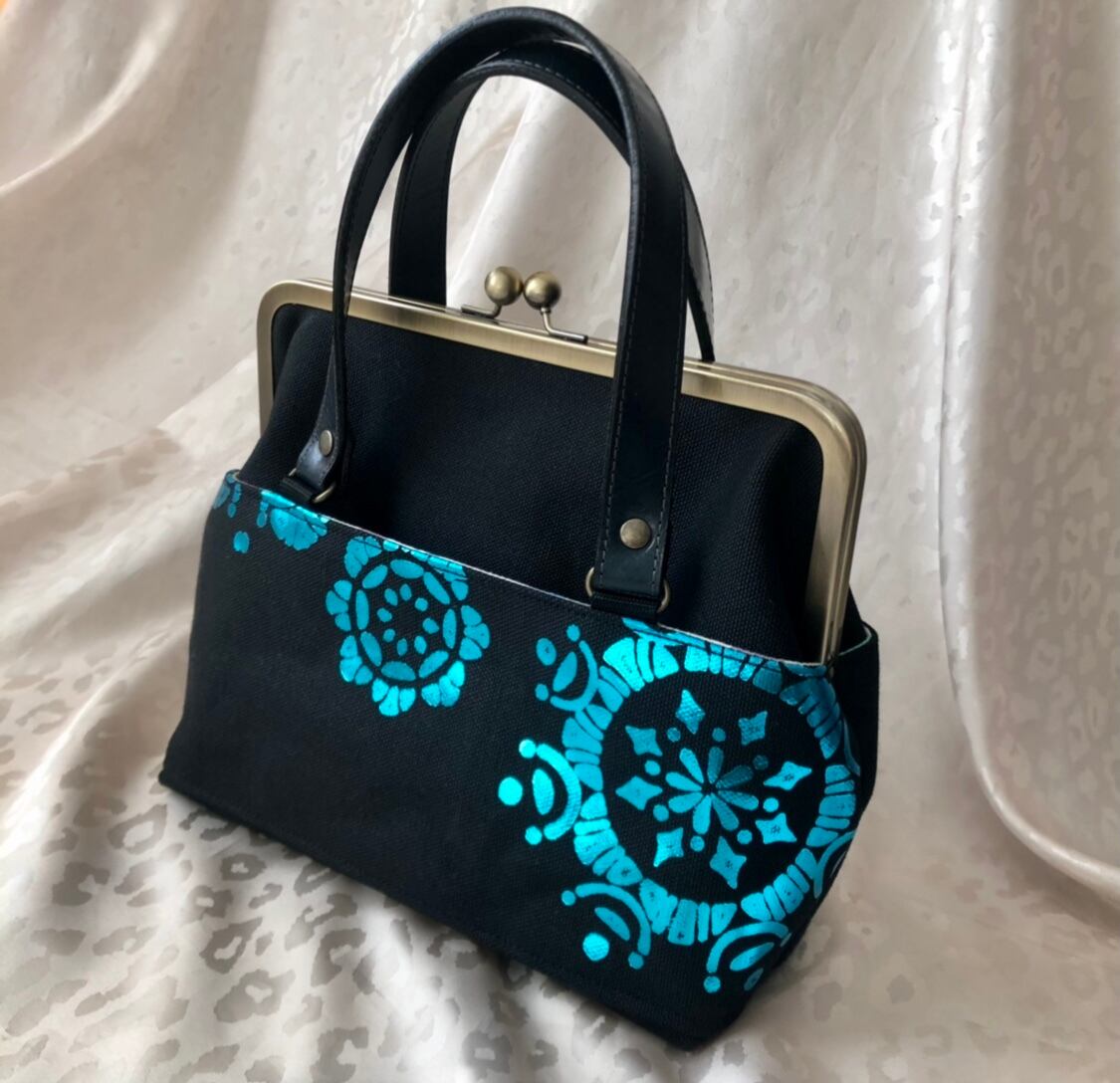 オリジナルテキスタイルブランド、彩りirodoriとコラボしたがまぐち、彩月シリーズのワンマイルトートです。