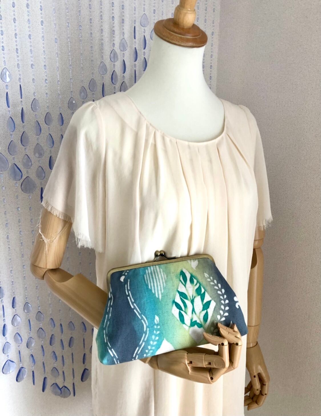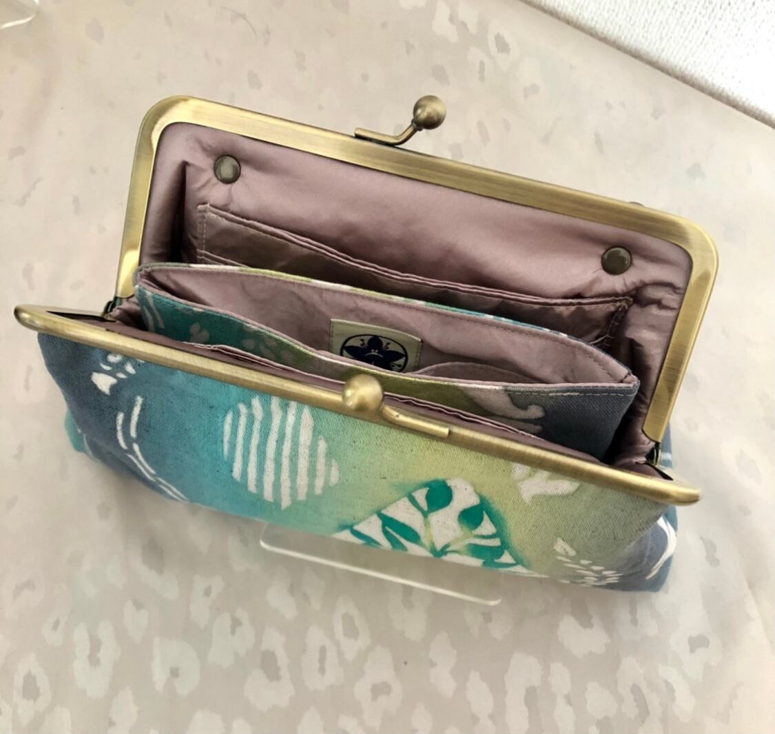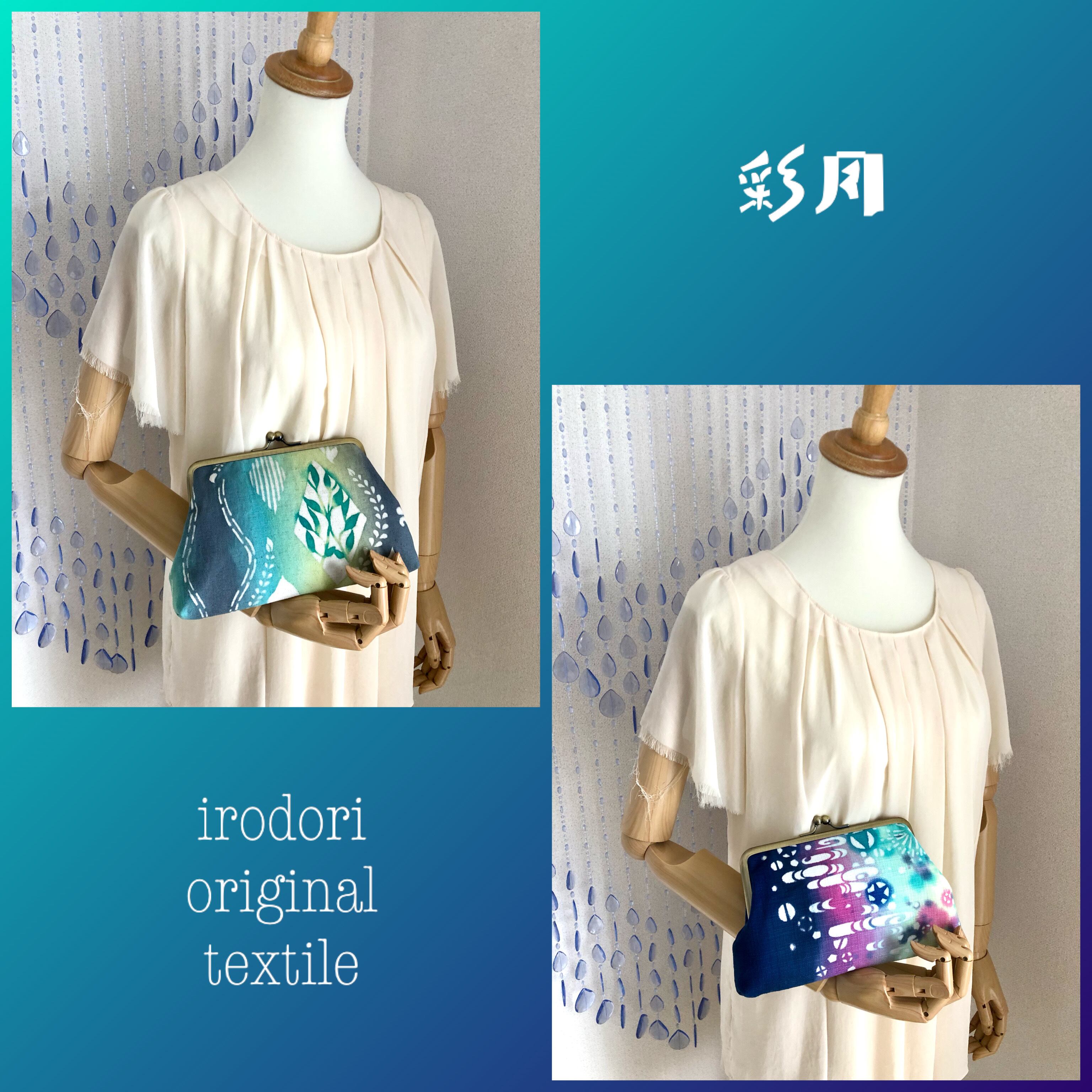 オリジナルテキスタイルブランド、彩りirodoriとコラボしたがまぐち、彩月シリーズのお財布ショルダーです。