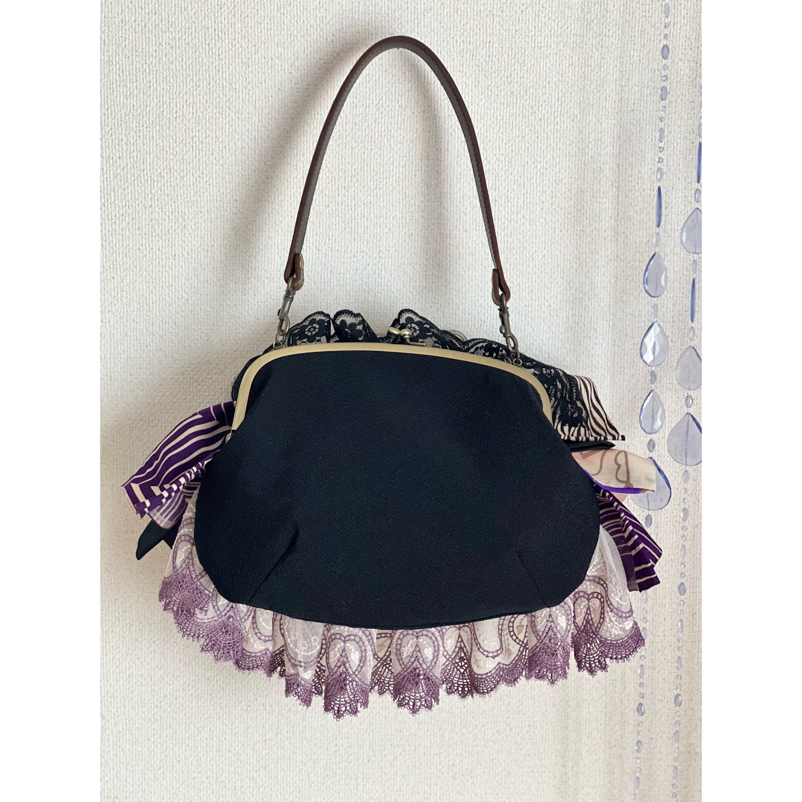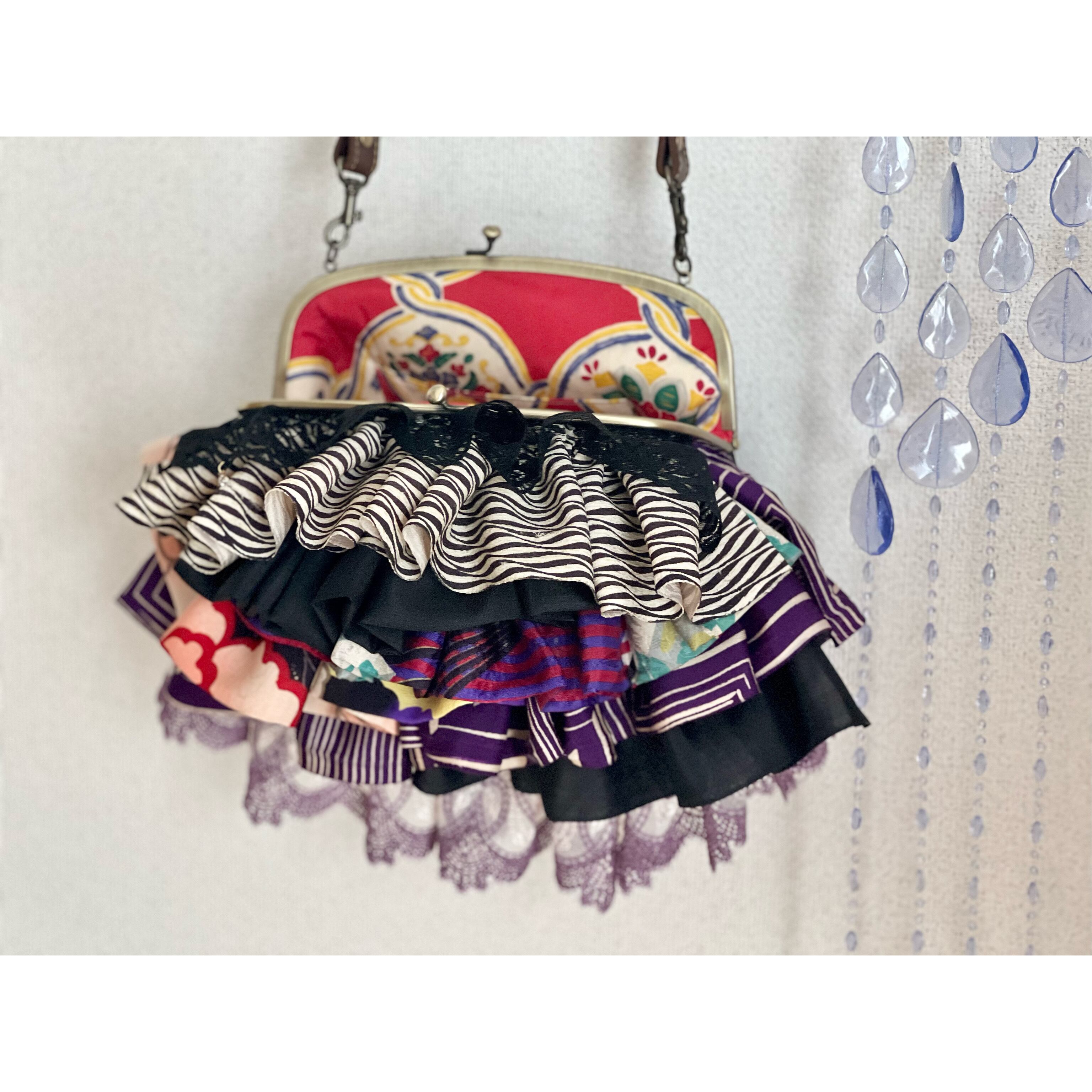 アンティークの古布にレースを合わせ、盛りモリにフリルをよせた、ゆめかわレトロな主役バッグ