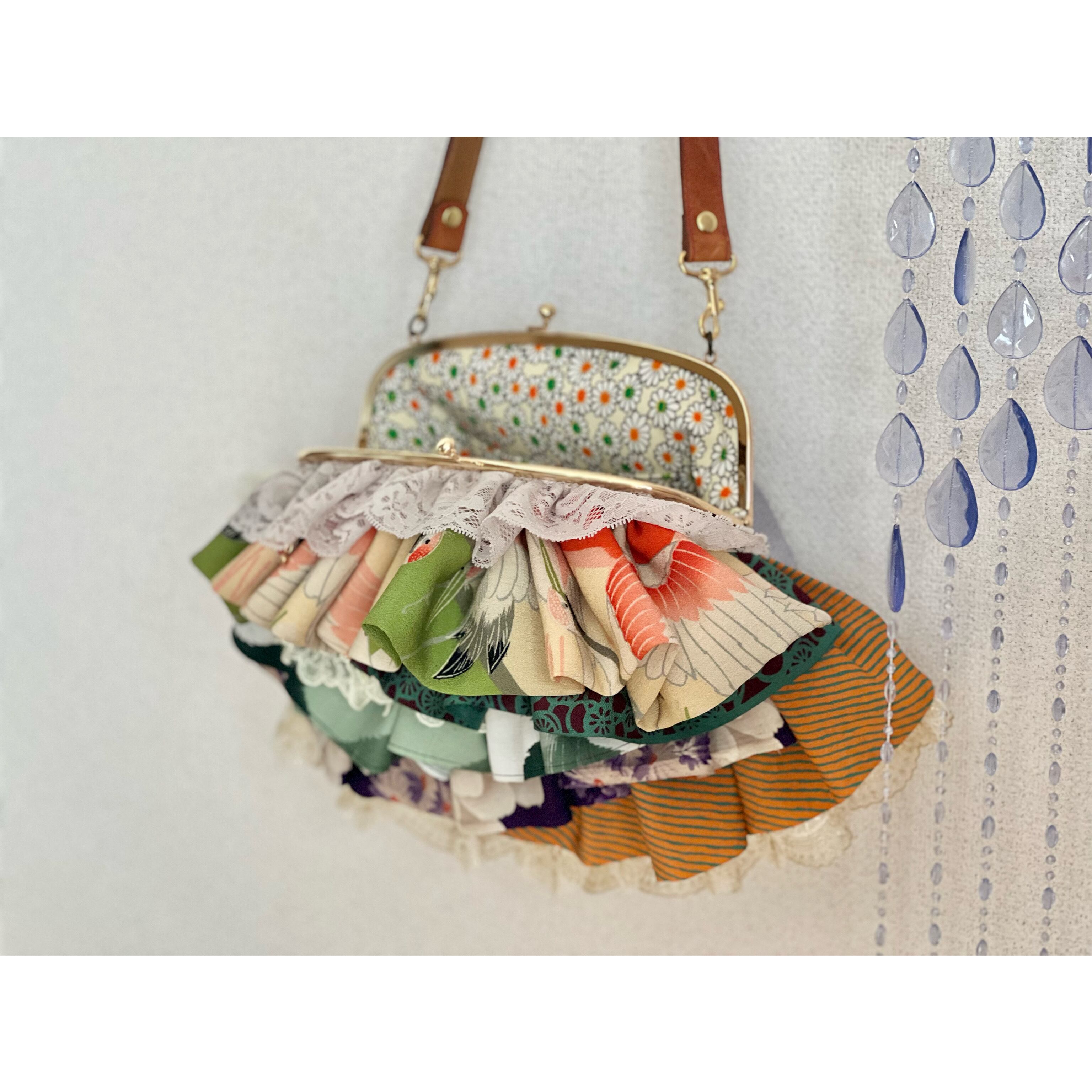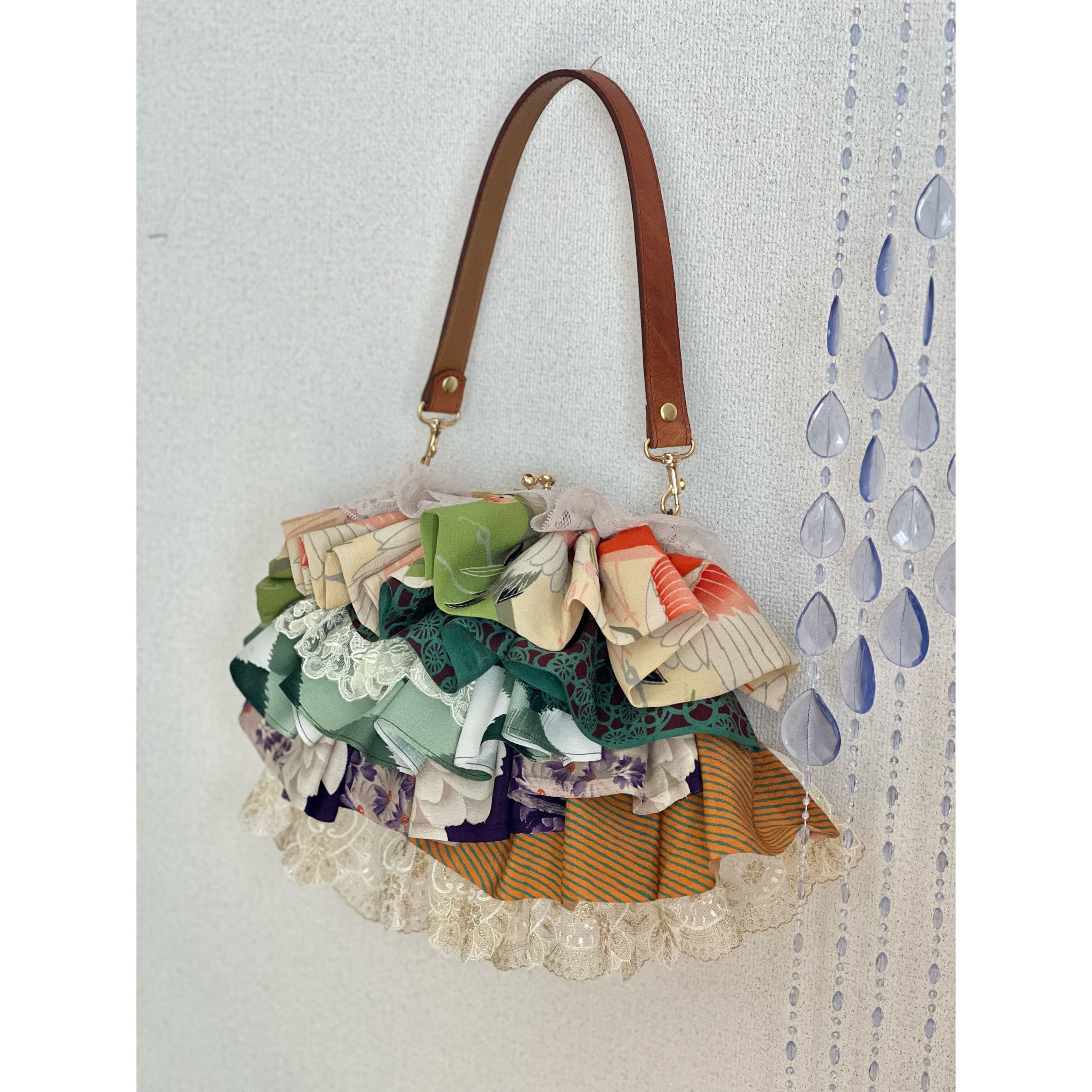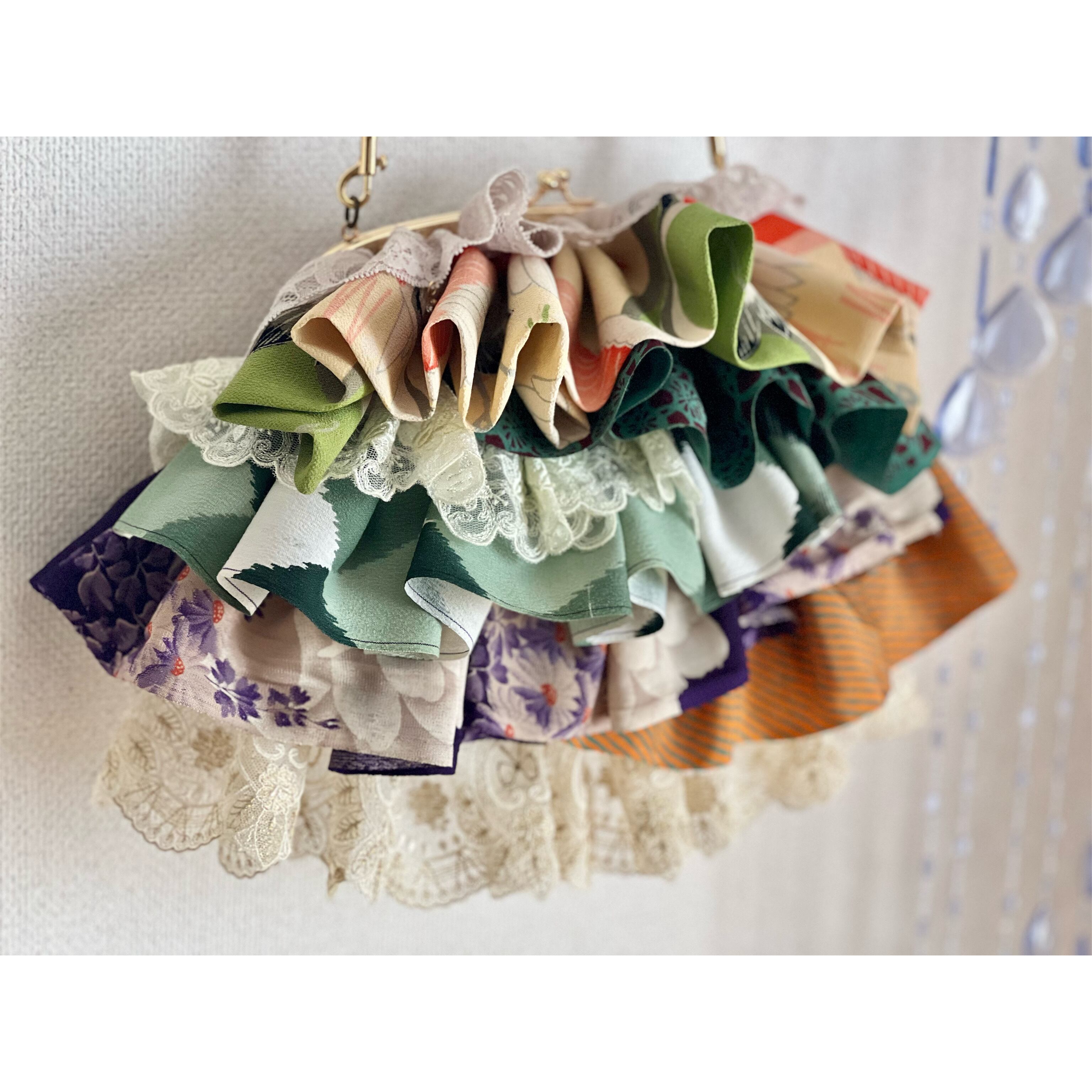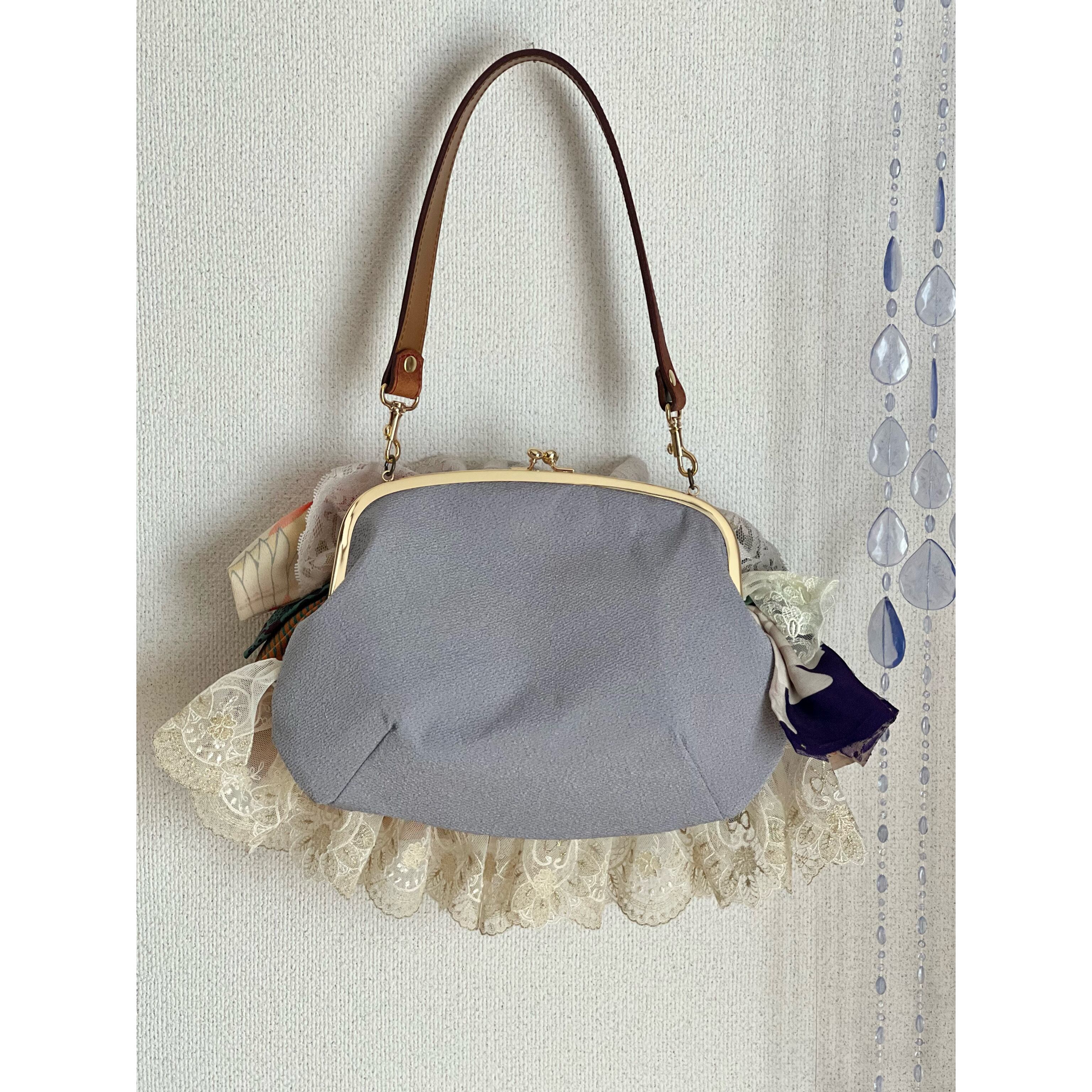 アンティークの古布にレースを合わせ、盛りモリにフリルをよせた、ゆめかわレトロな主役バッグ
