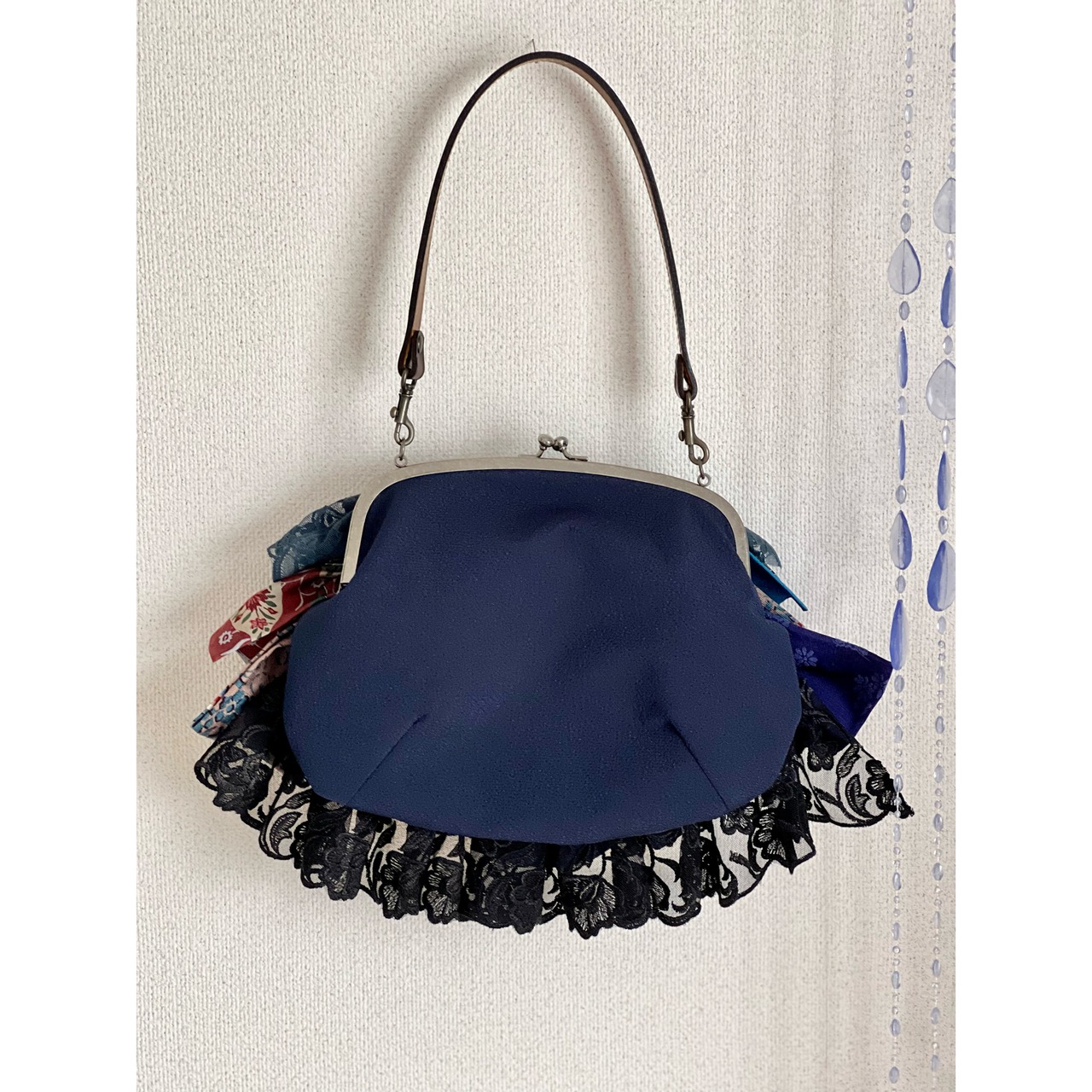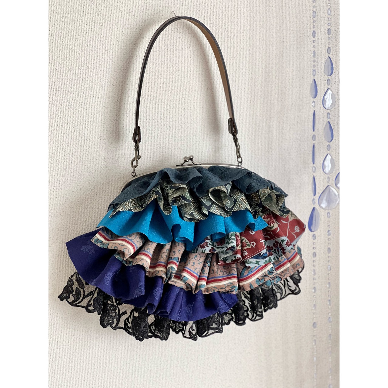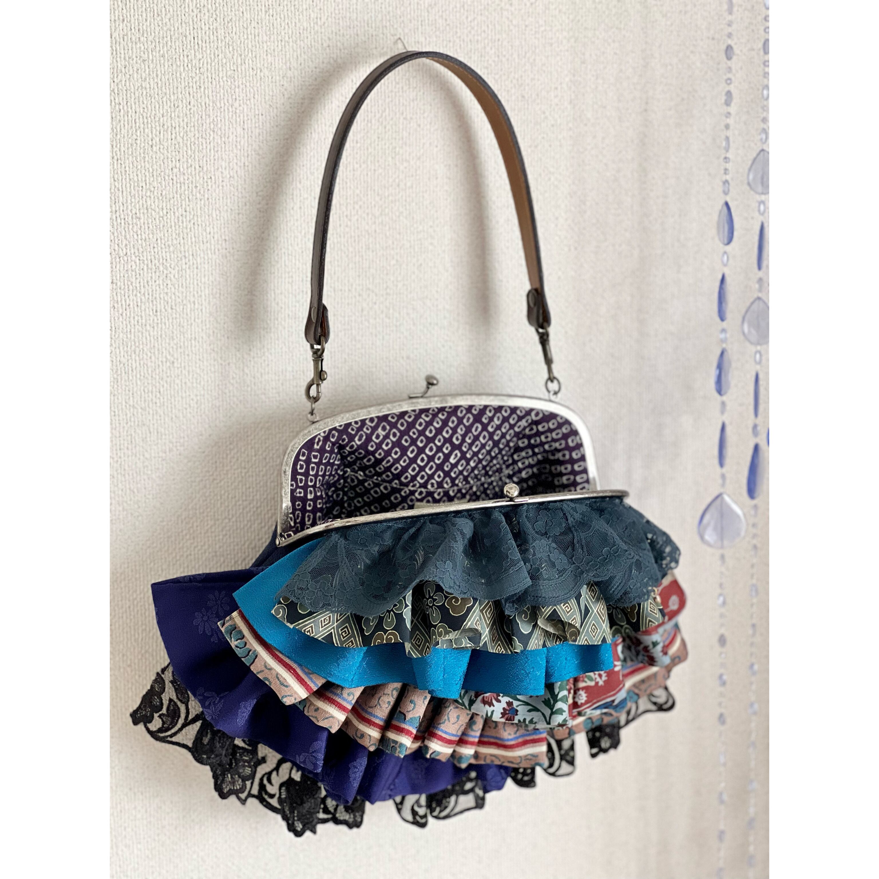 アンティークの古布にレースを合わせ、盛りモリにフリルをよせた、ゆめかわレトロな主役バッグ