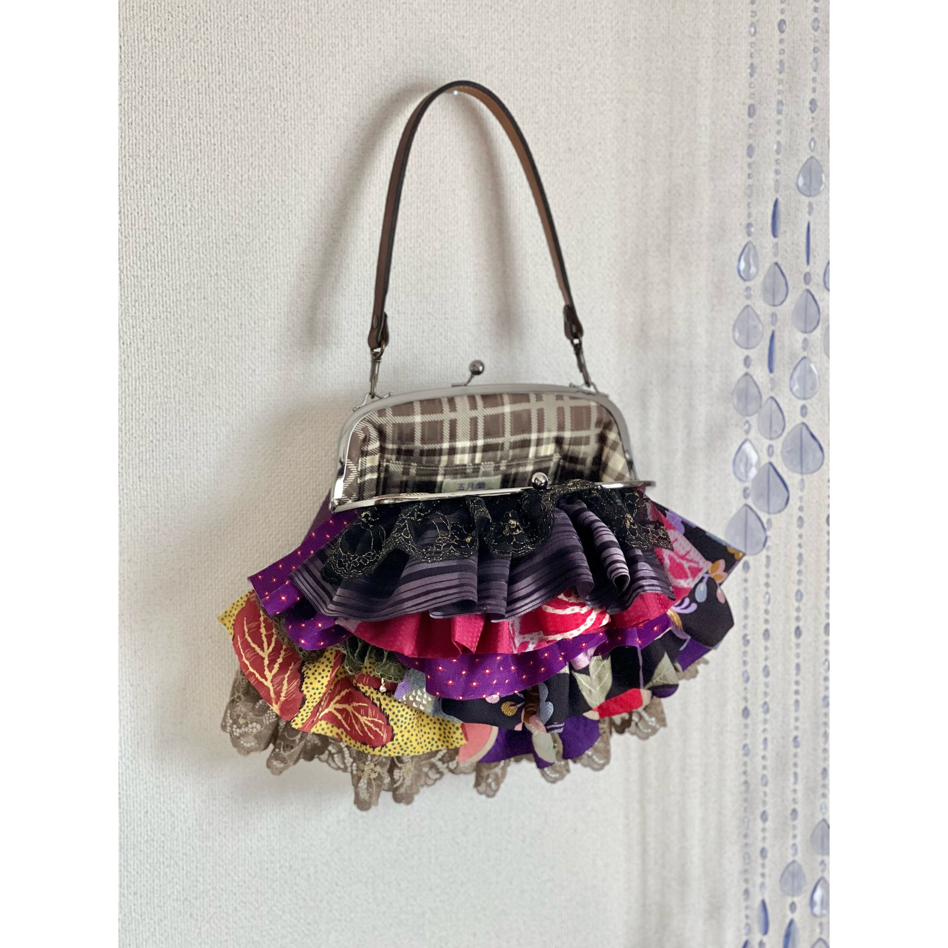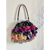 アンティークの古布にレースを合わせ、盛りモリにフリルをよせた、ゆめかわレトロな主役バッグ