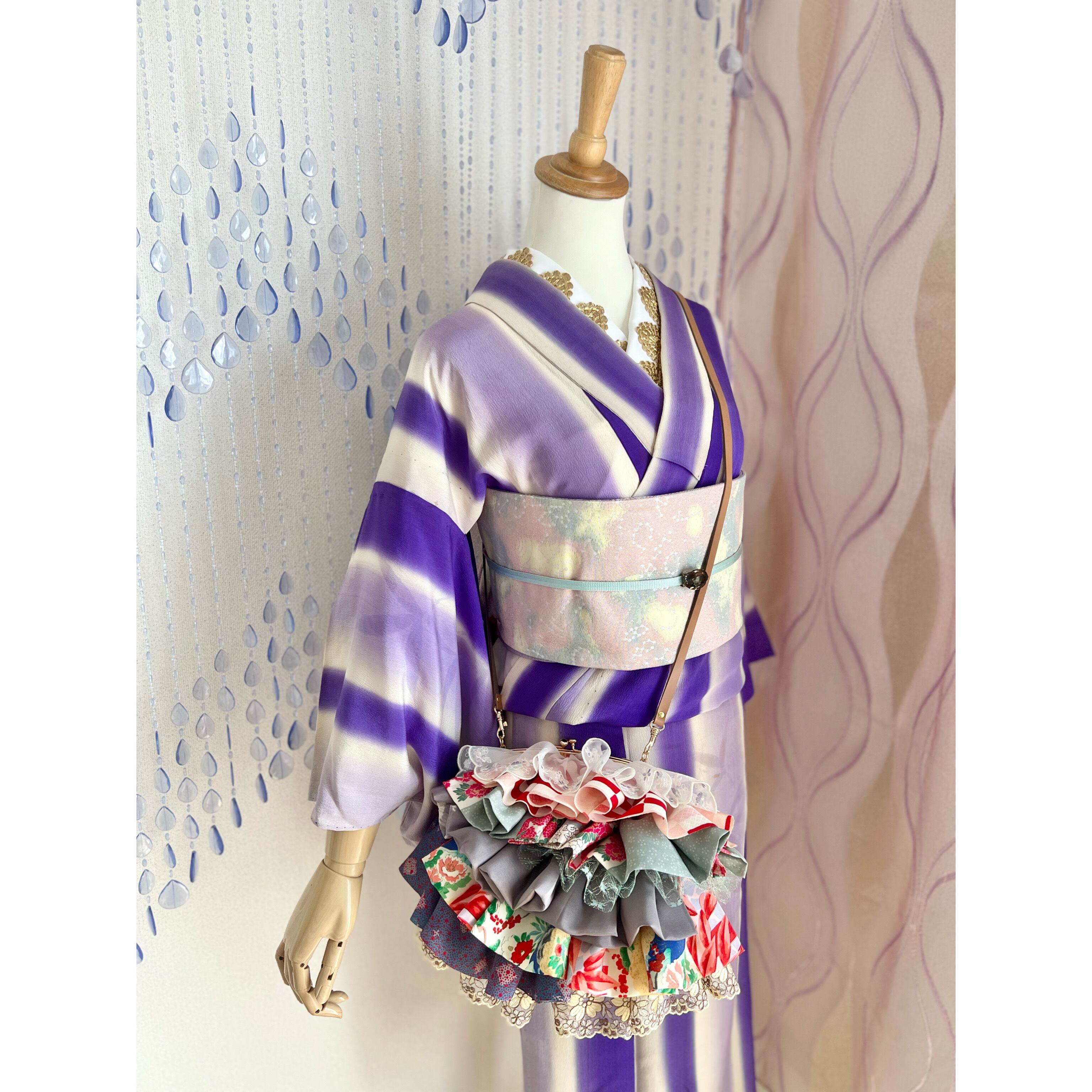 アンティークの古布にレースを合わせ、盛りモリにフリルをよせた、ゆめかわレトロな主役バッグ