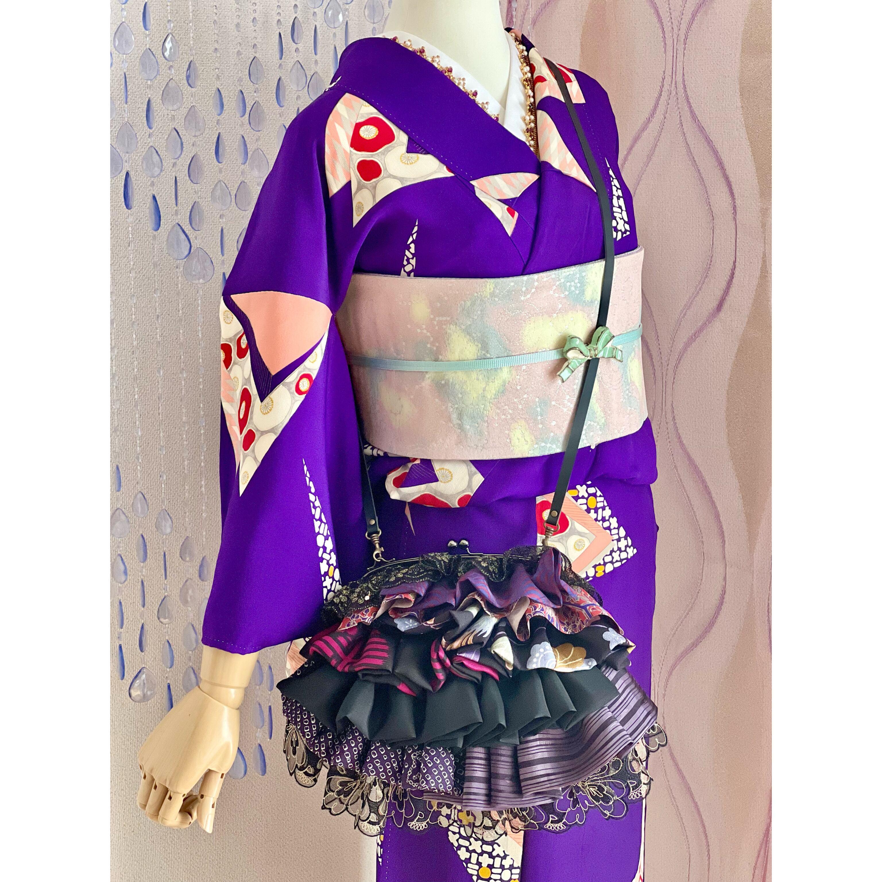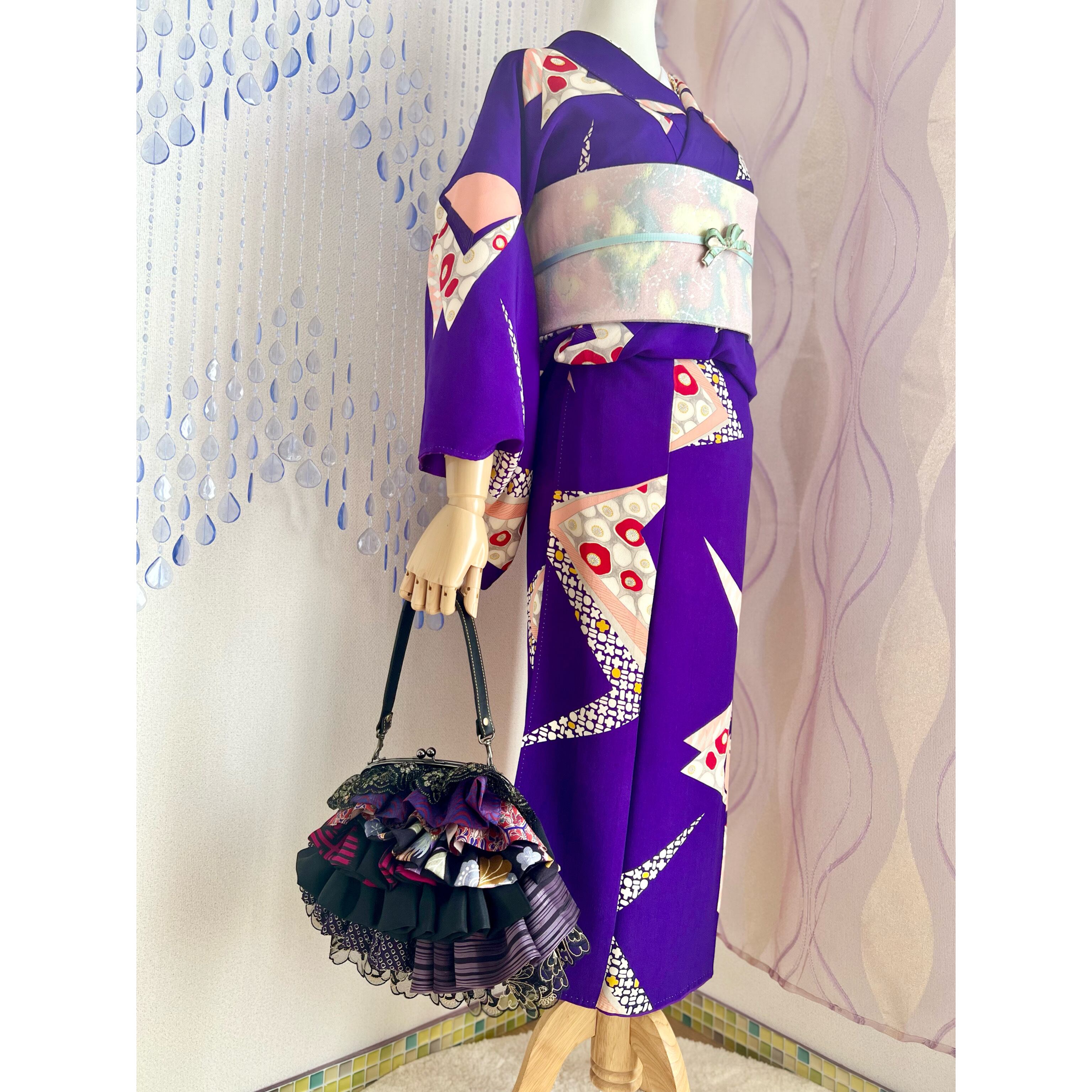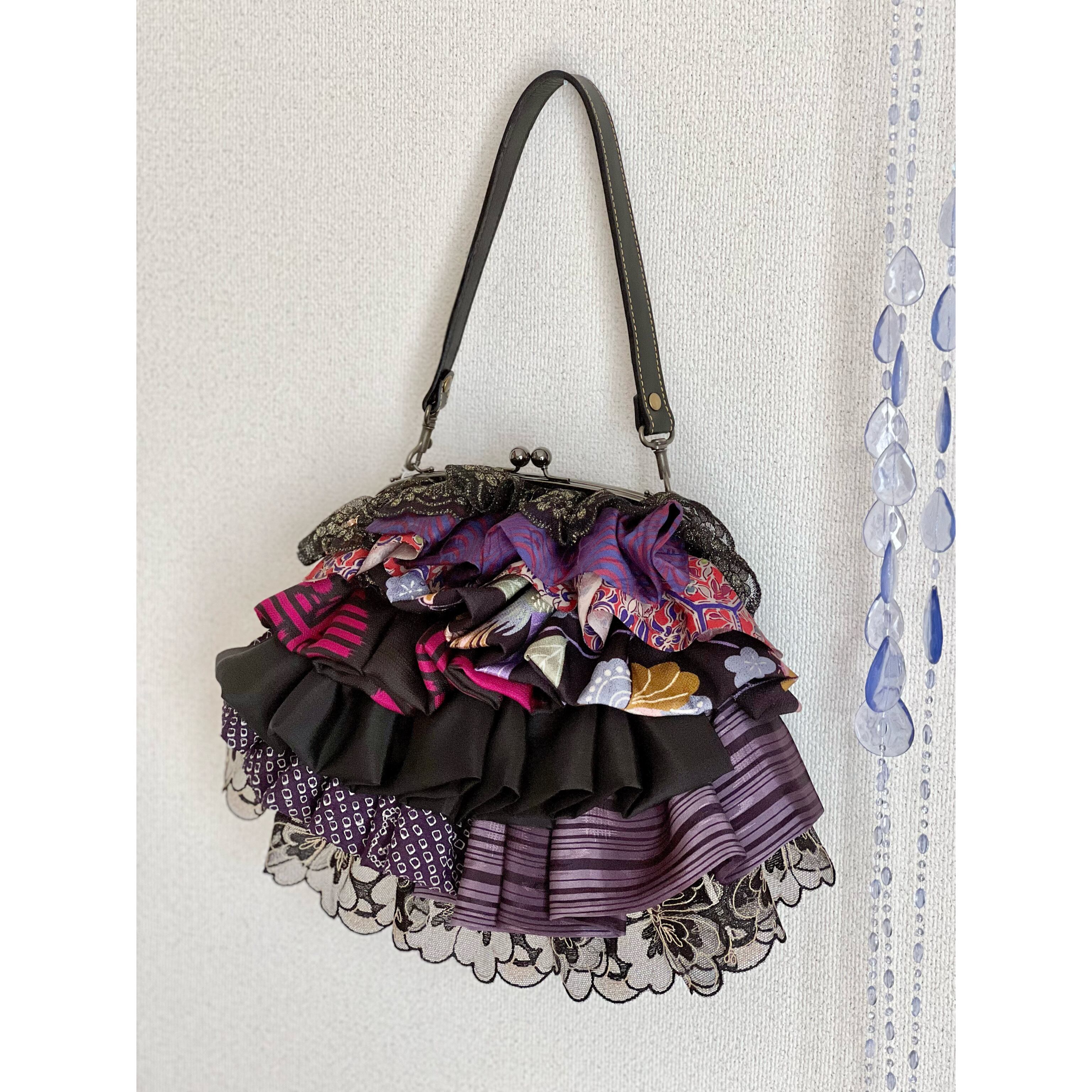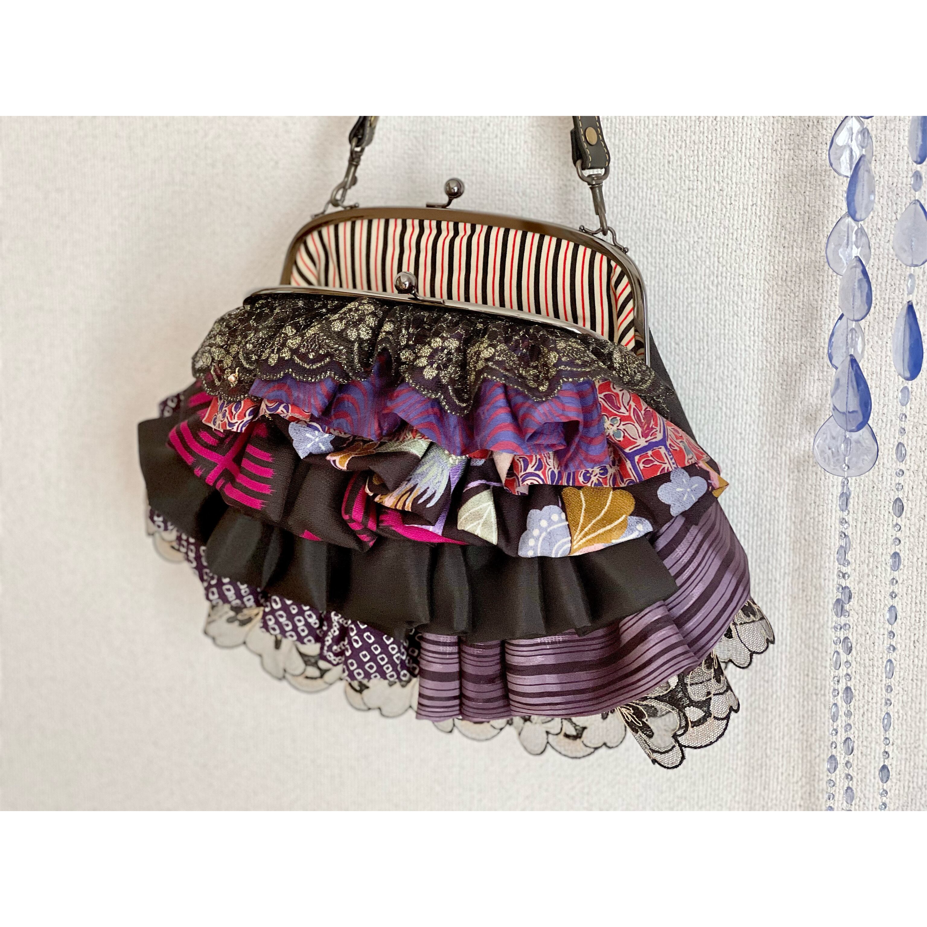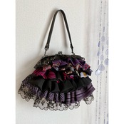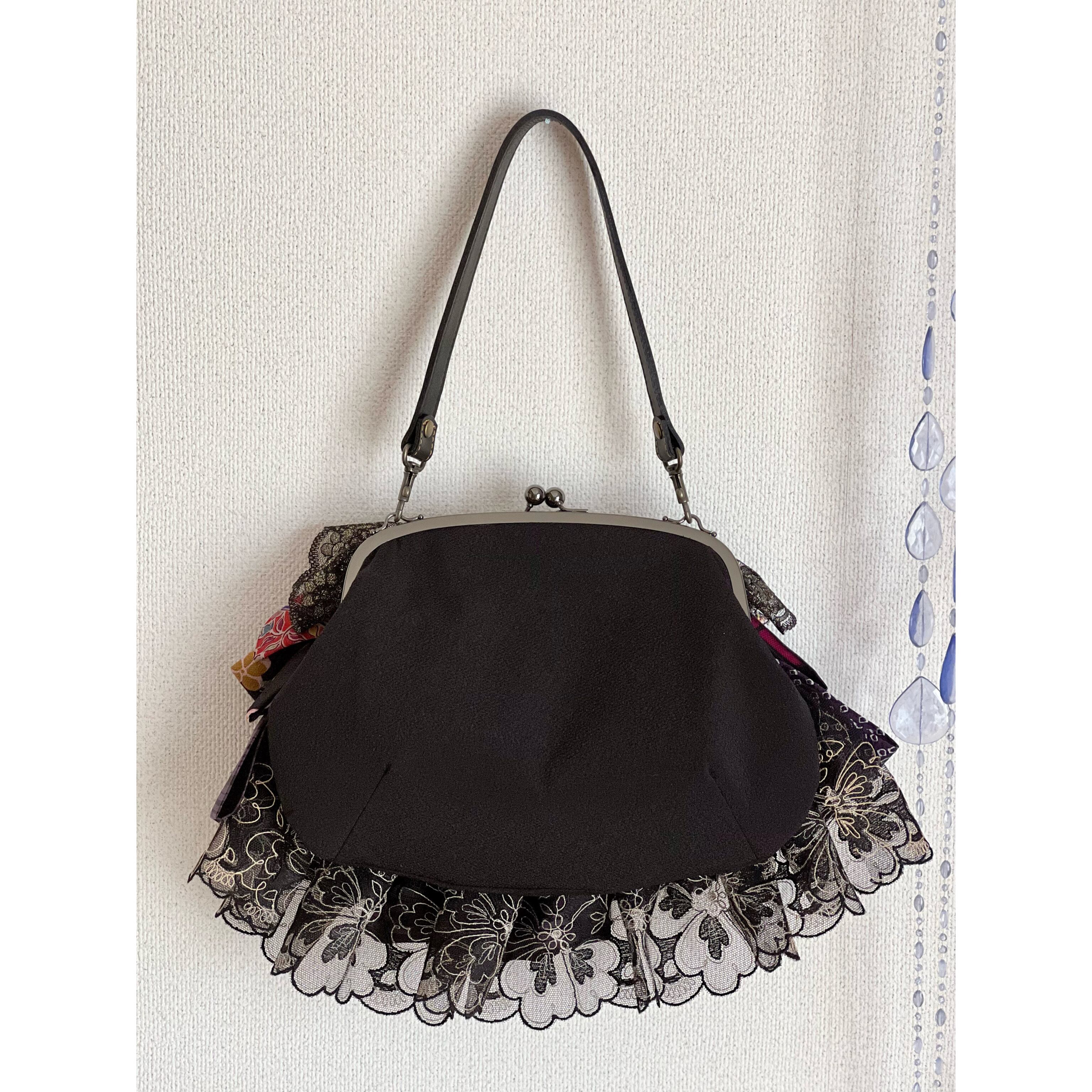 アンティークの古布にレースを合わせ、盛りモリにフリルをよせた、ゆめかわレトロな主役バッグ