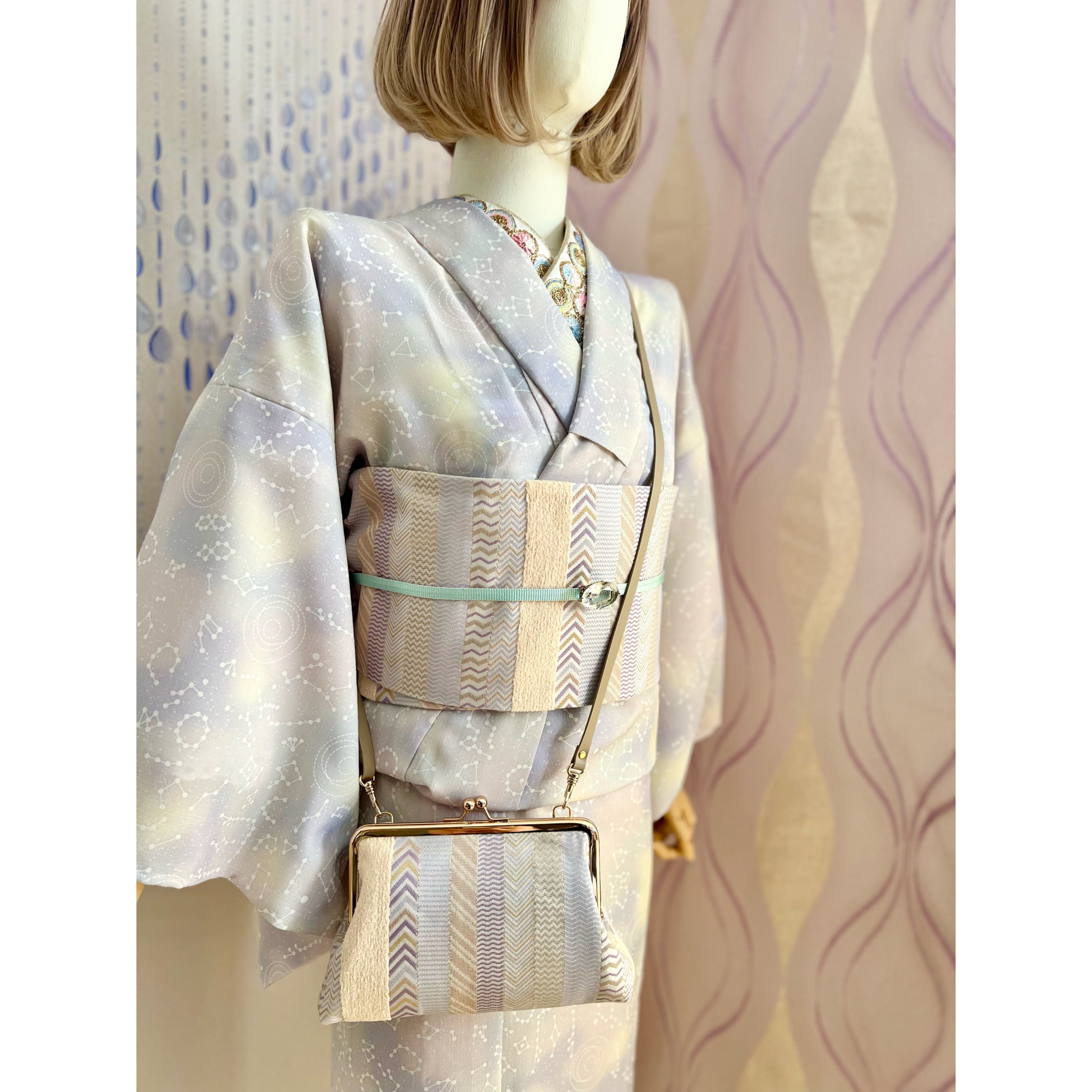 しっかりとした張りのある帯地が、バッグや小物などの普段使いアイテムにプロダクトされ、着物以外のシーンでも活躍。