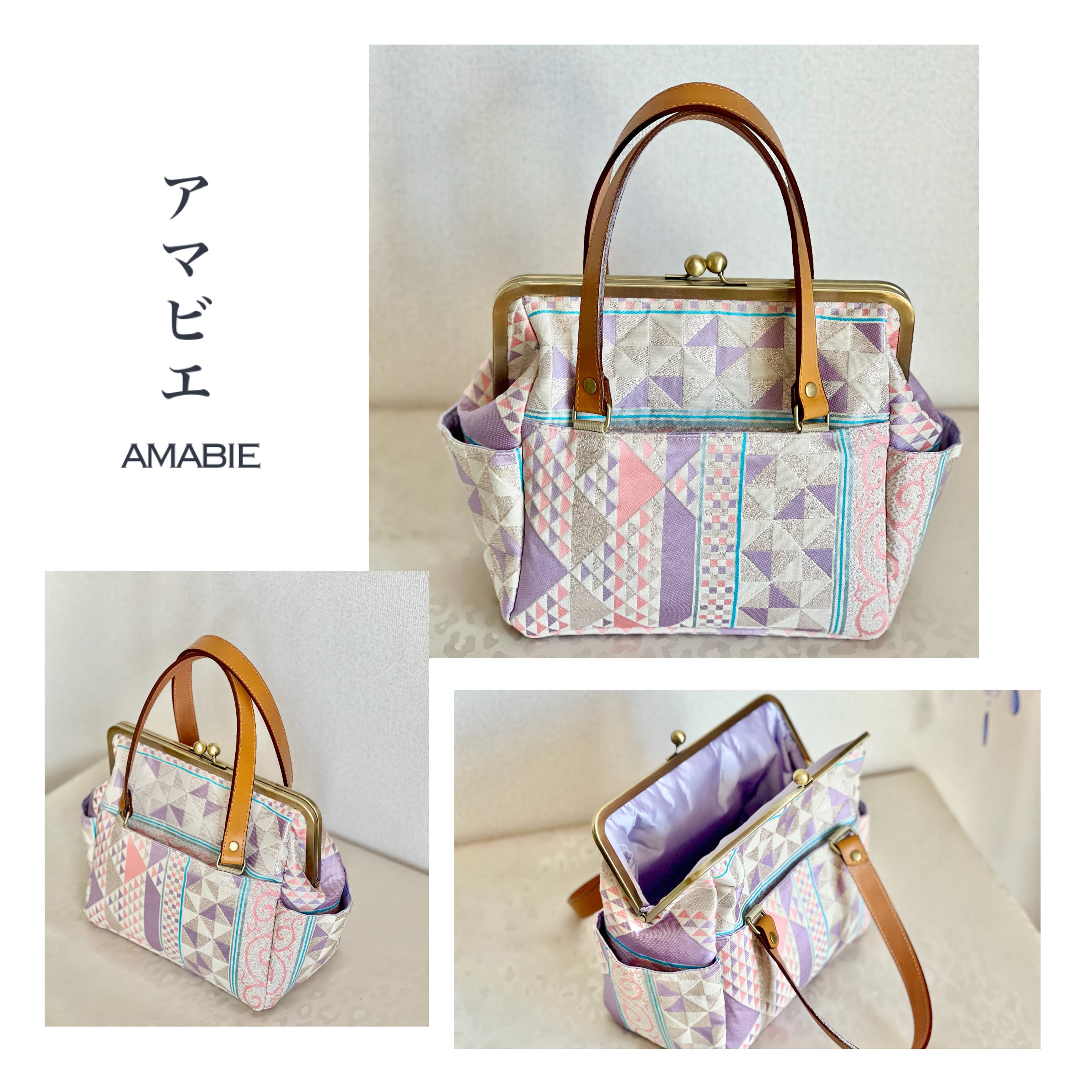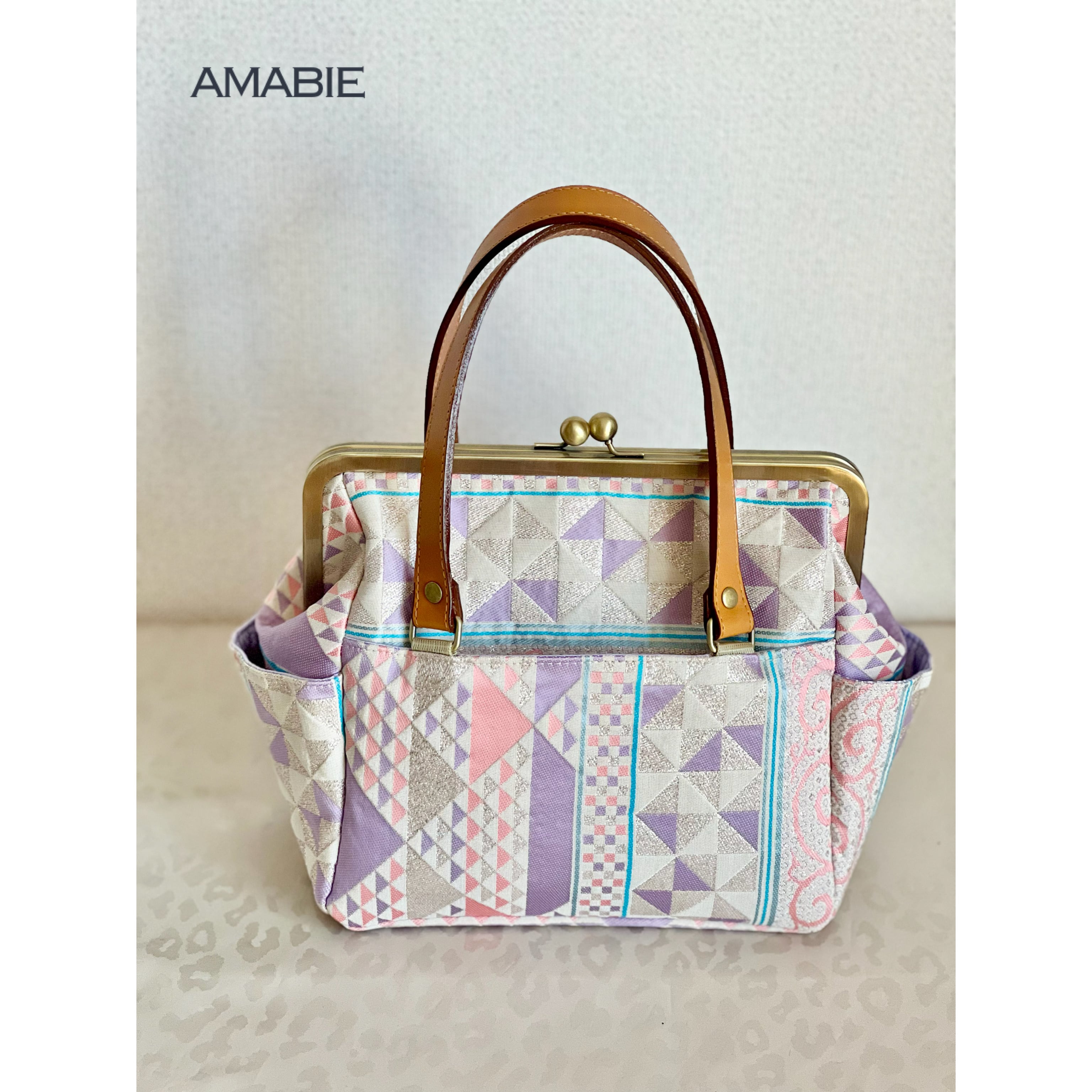 桐生織の帯地を使用した、がまぐちミニボストンです。
