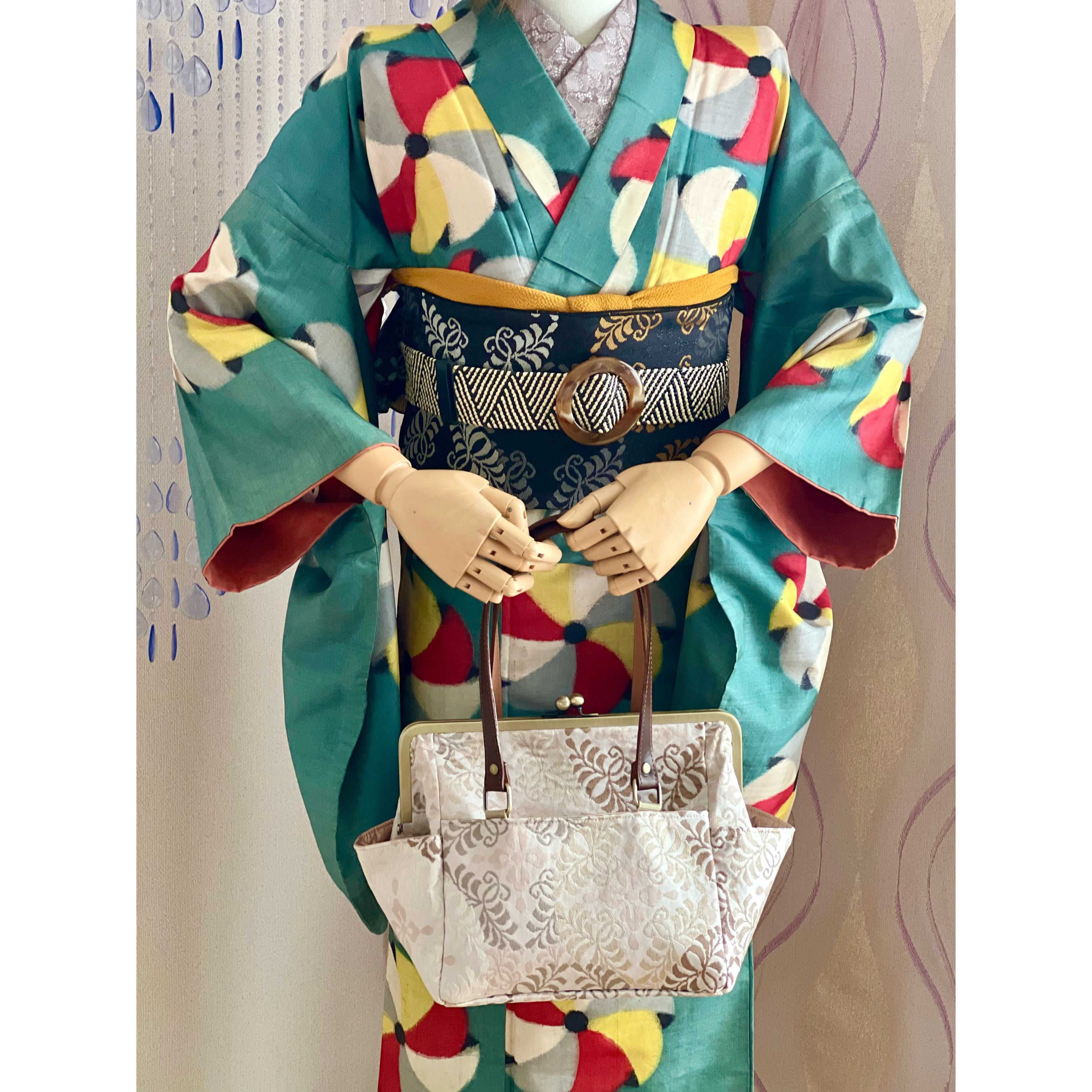 しっかりとした張りのある帯地が、バッグや小物などの普段使いアイテムにプロダクトされ、着物以外のシーンでも活躍。