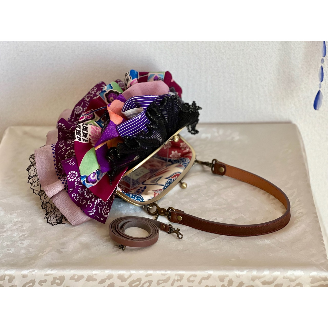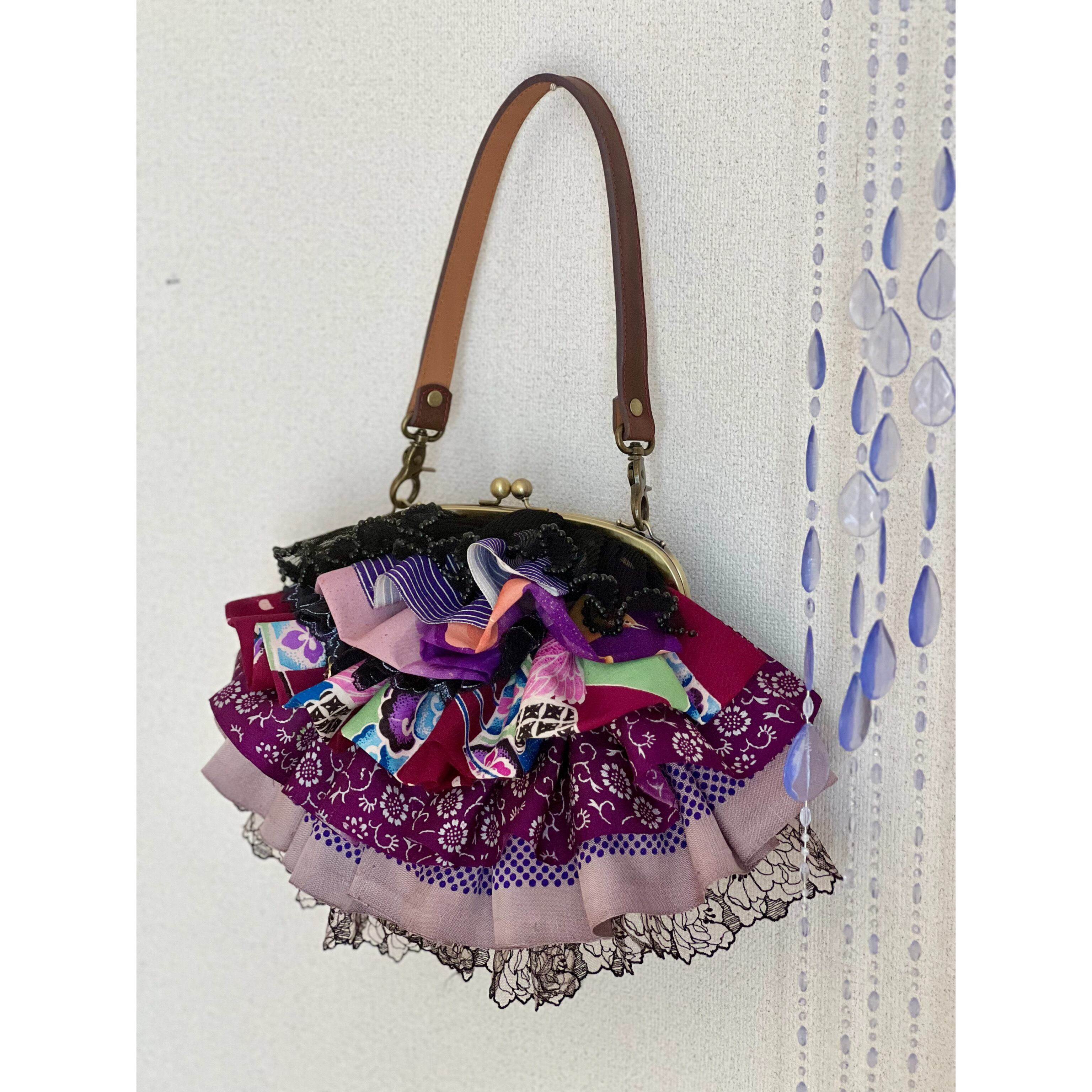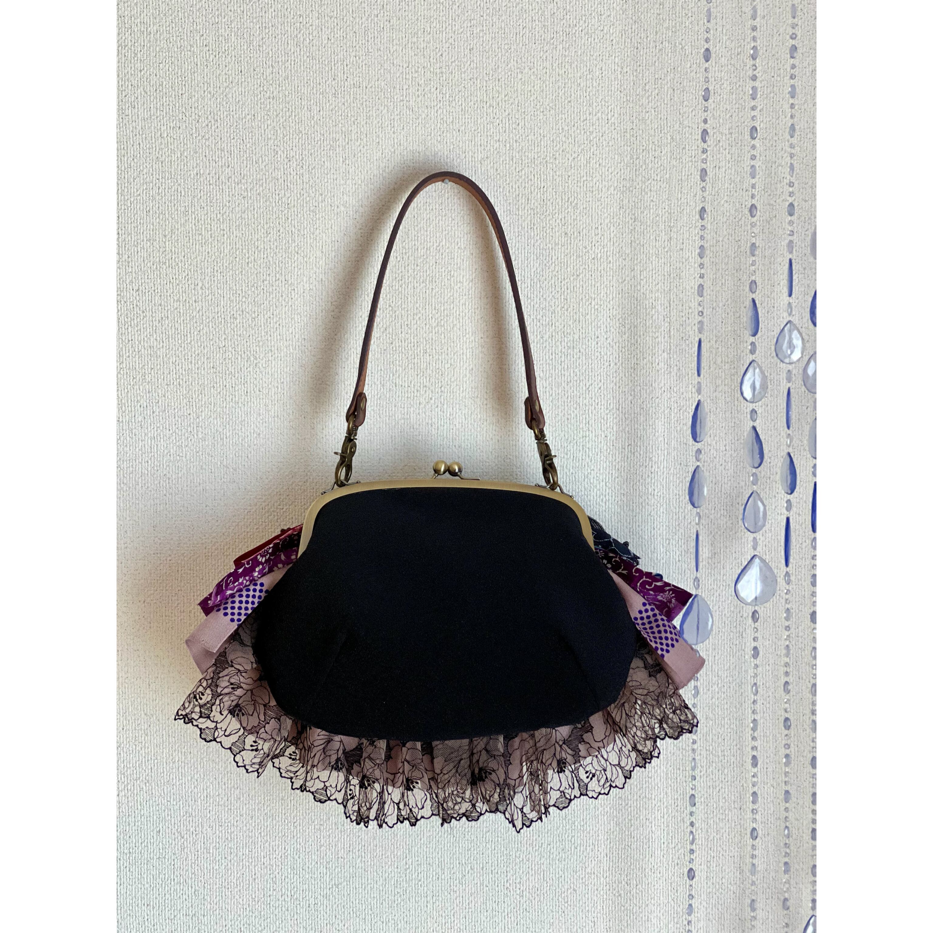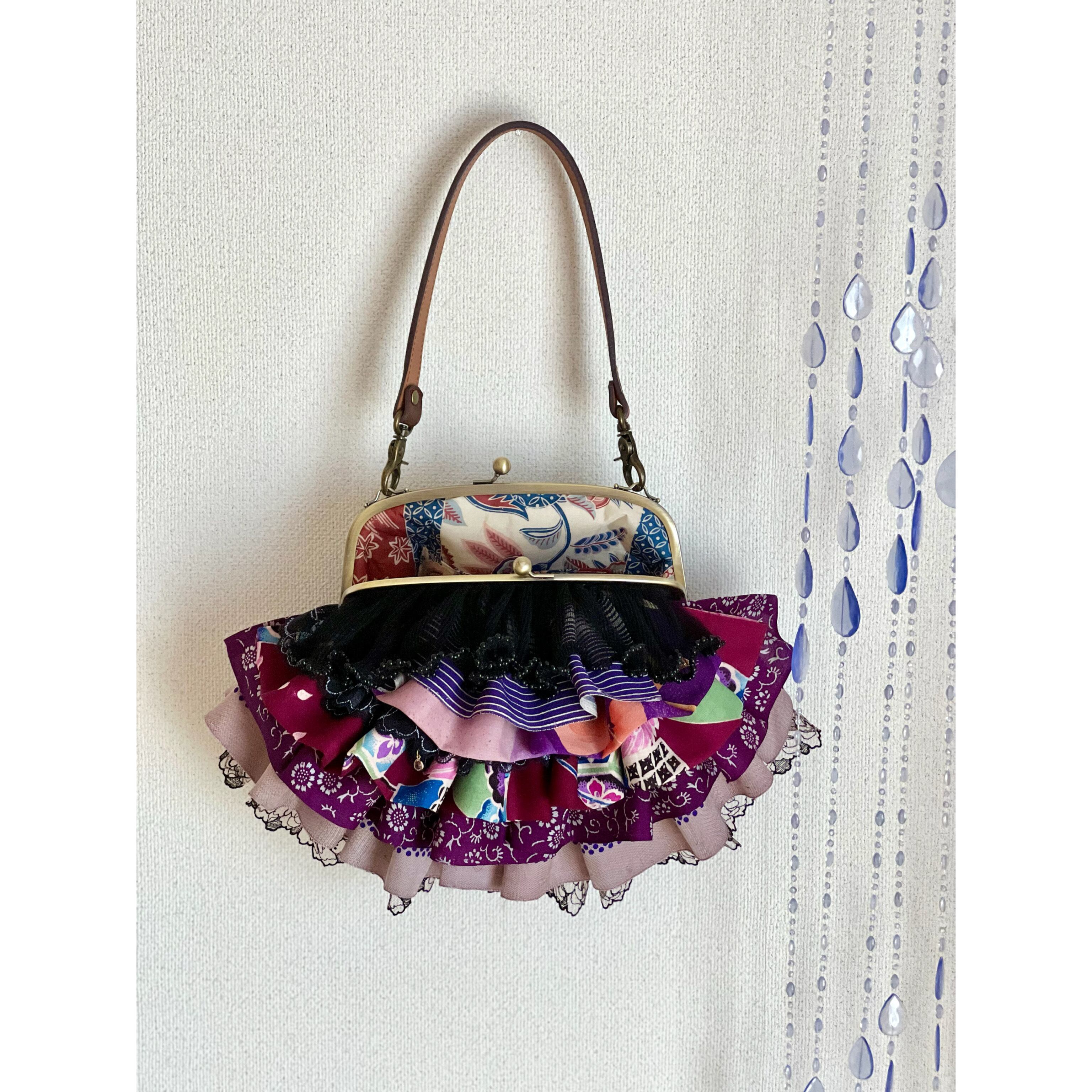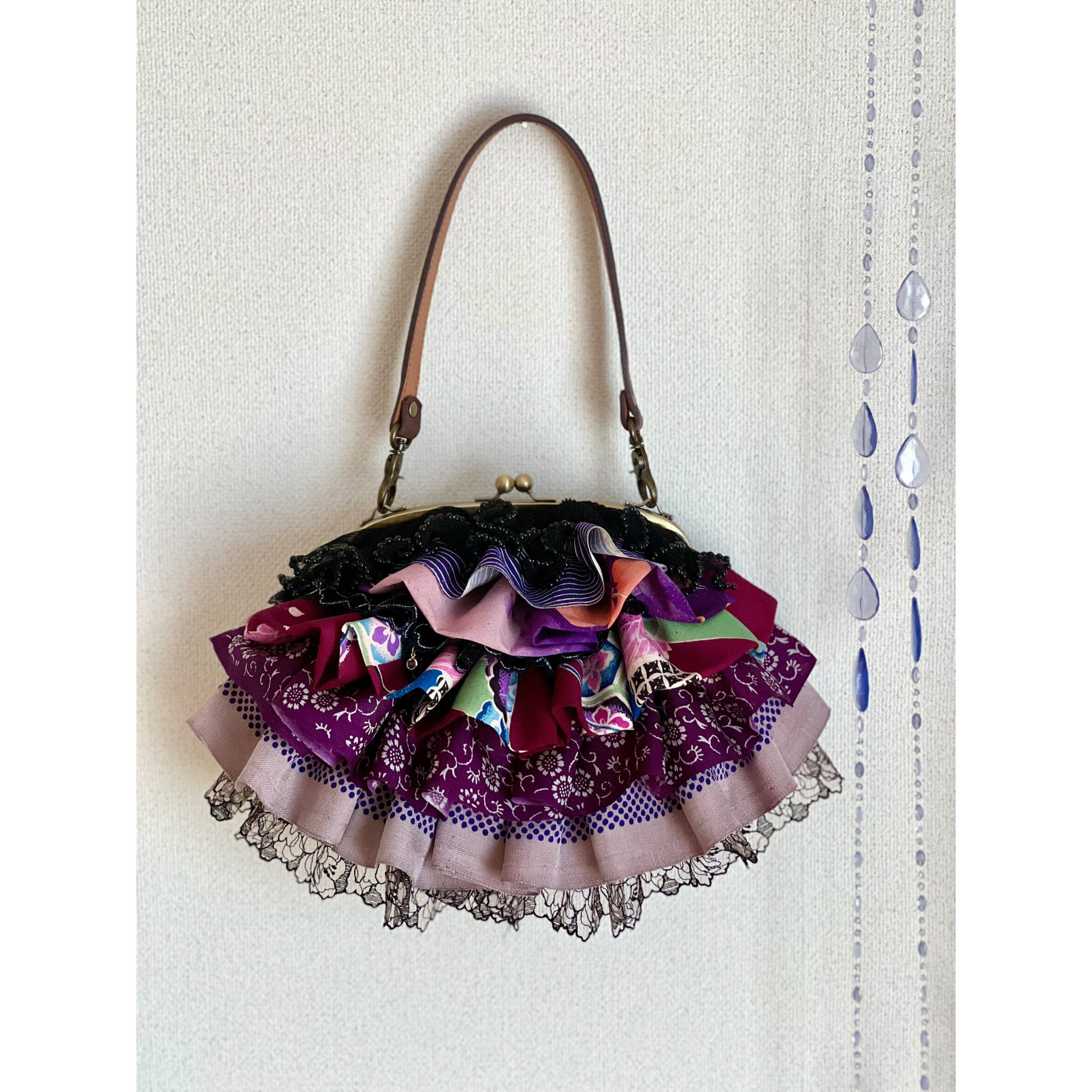 アンティークの古布にレースを合わせ、盛りモリにフリルをよせた、ゆめかわレトロな主役バッグ